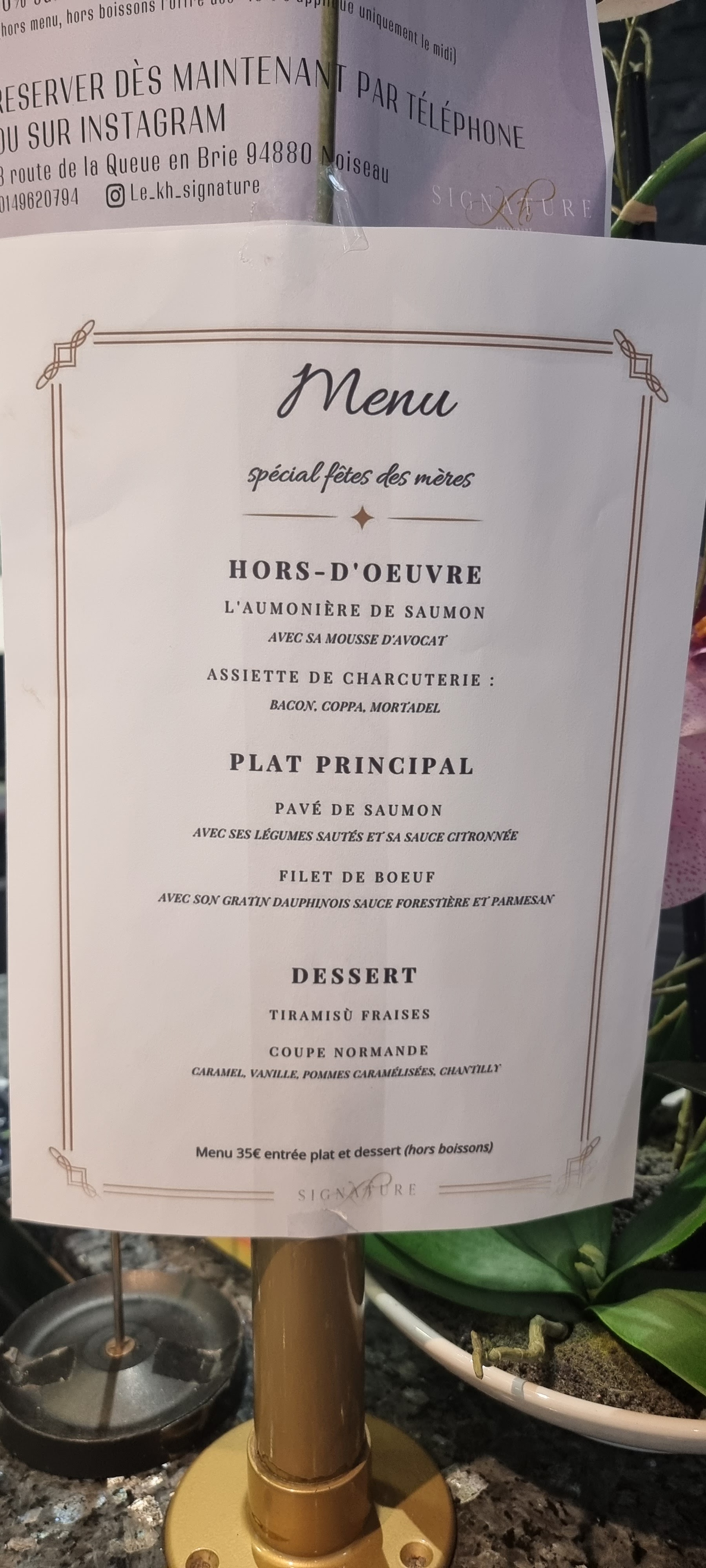 Restaurant incroyable ! Nous avons été très bien accueillis par le gérant ainsi que le serveur au top. Tout les plats étaient super bon de l’entrée jusqu’au dessert (les plats était très copieux) bravo au chef pour les plats de qualités. Je retournerai très prochainement avec ma famille et sûrement avec des amies également au vue de l’ambiance du restaurant. Merci encore à KH SIGNATURE !