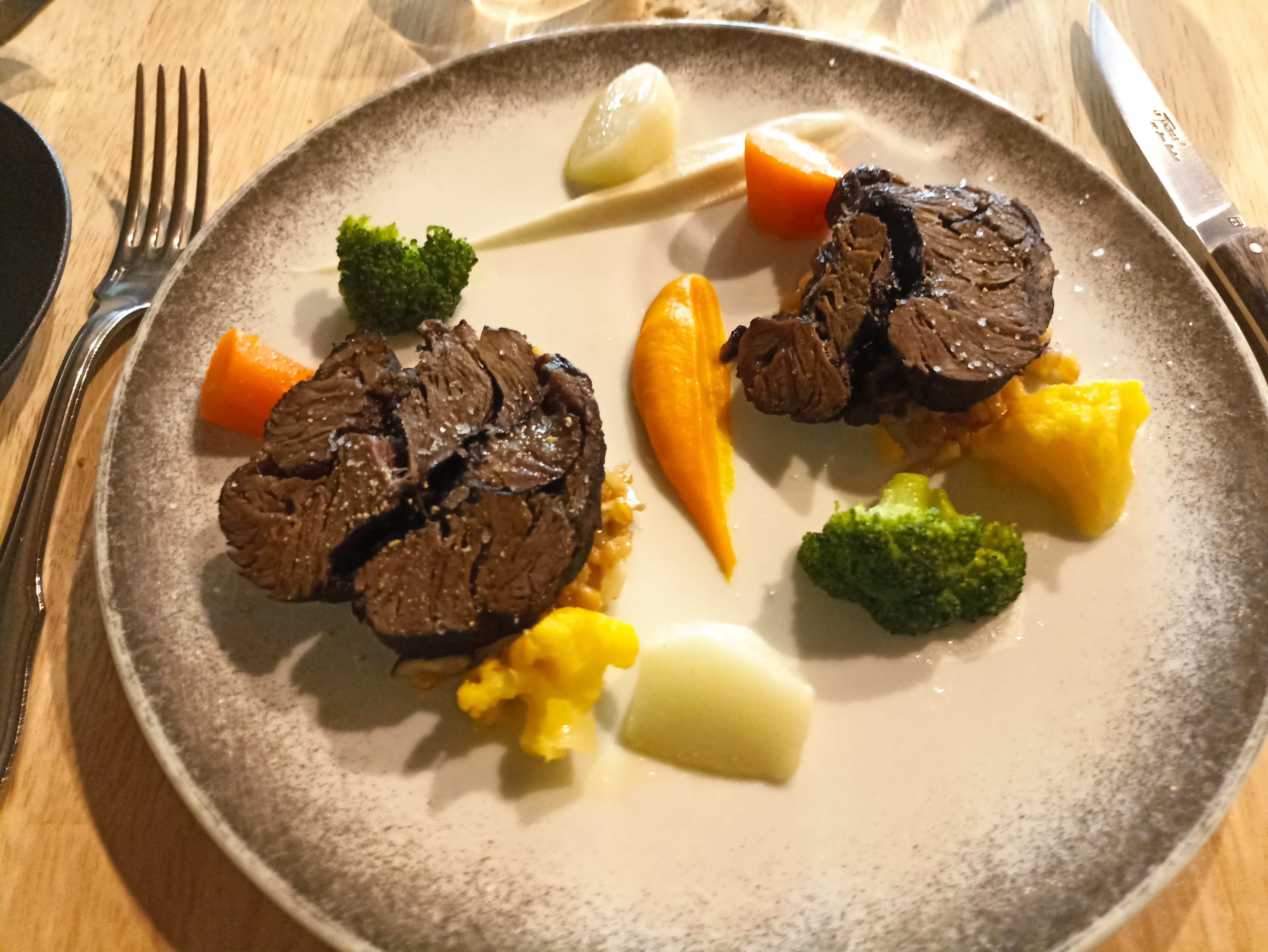 Un endroit très chaleureux une cuisine raffinée un service parfait une présentation des assiettes digne d’un gastro