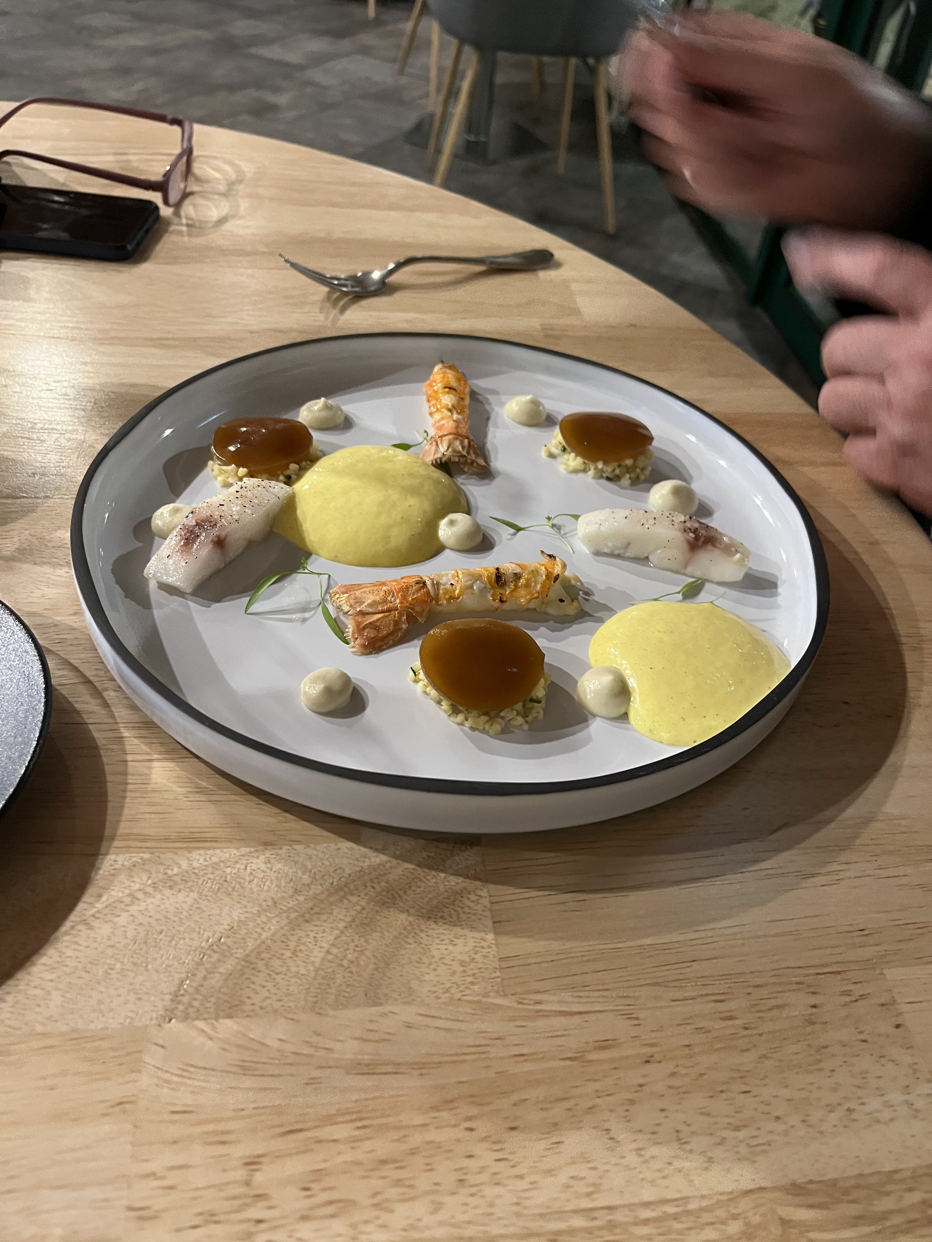 Accueil très sympathique et si la salle est un peu froide et la décoration minimaliste, tout se passe dans l'assiette : le repas est un régal, tant du point de vue de la présentation que du goût.Bravo.Longue vie à ce restaurant tenu par un jeune couple absolument talentueux.