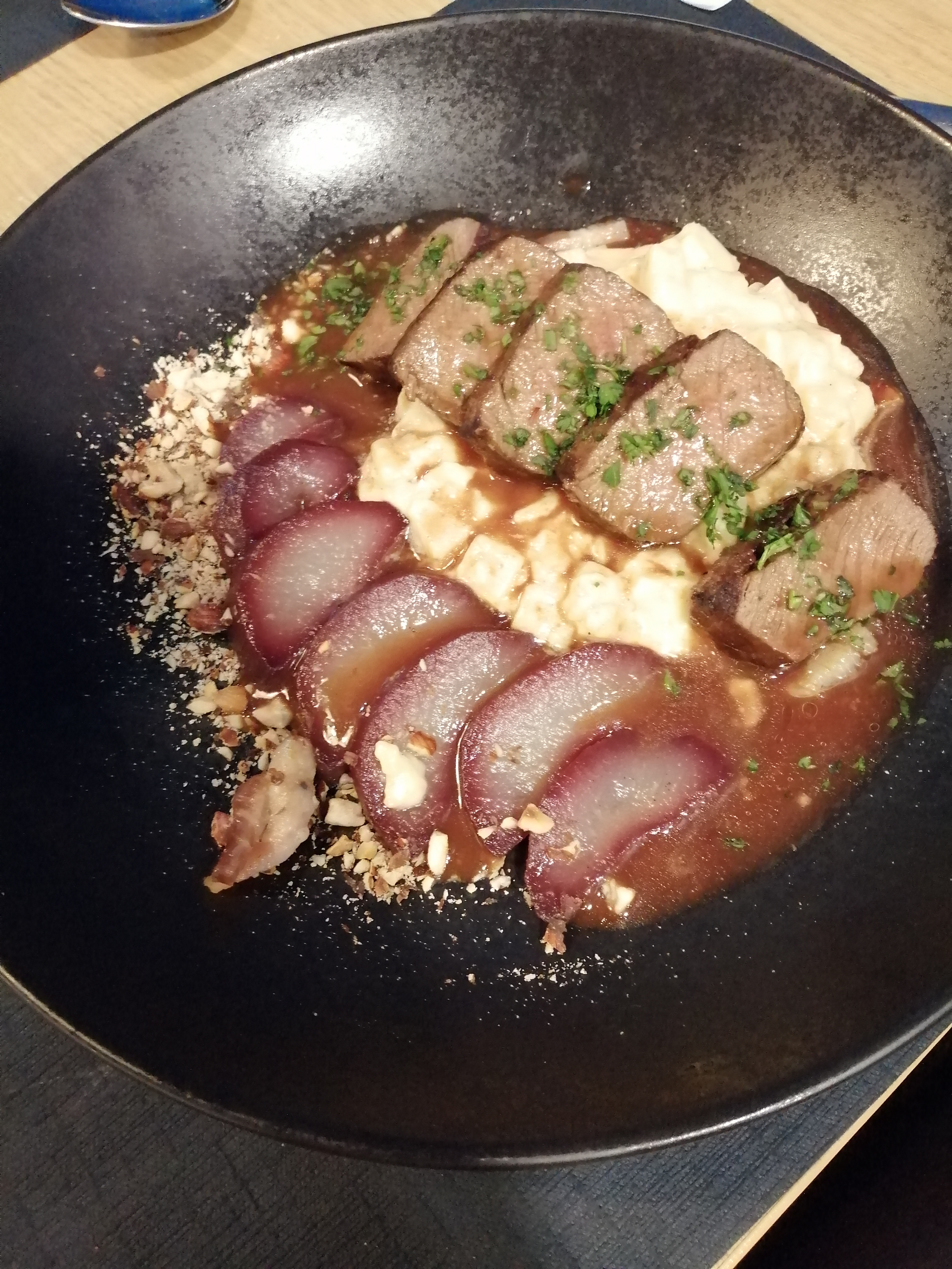 Très déçu de la cuisson basse température du paleron : caoutchouc teux ! ( Menu du jour) Plat tiède, dessert moyen.