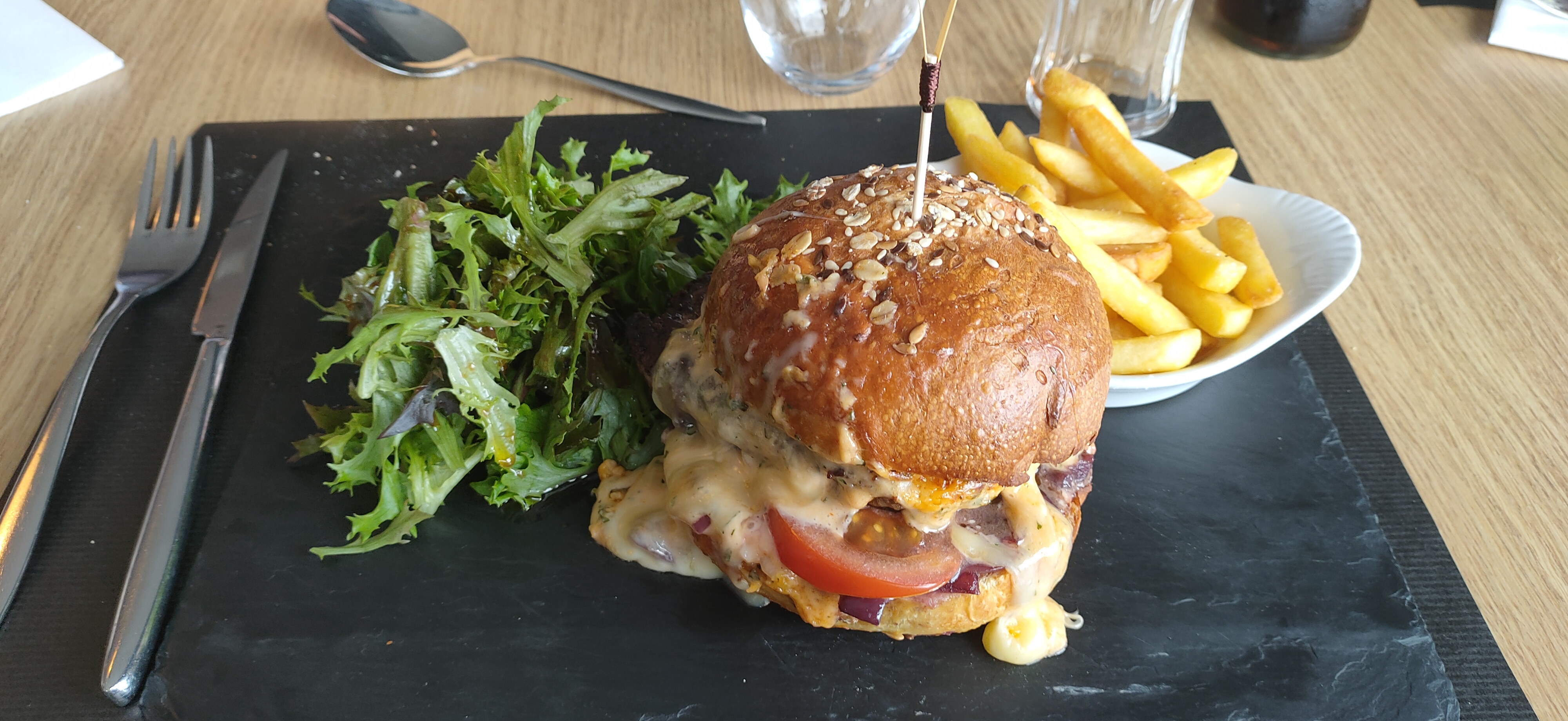 Un bon moment passé en famille !... Le dos de cabillaud était parfait et les burgers très copieux et très bons. Cependant la musique d ambiance était à peine forte. Il est vrai que le service est long mais lorsque les produits sont travaillés à la commande il faut savoir être patient. Une vraie belle adresse 😉