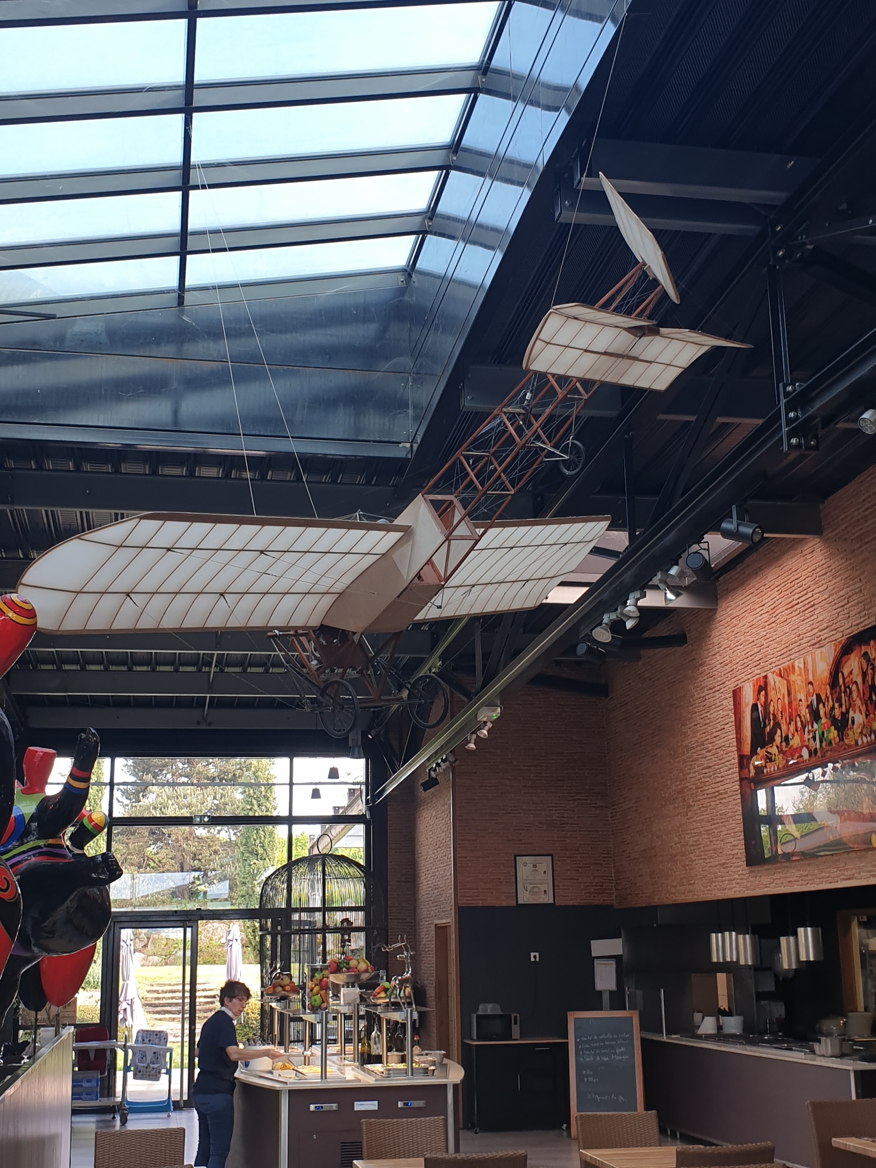 Après 220 kms.. cette aire est reposante ... petite mare avec plein de poissons près du restaurant...la déco est sympa avec l'avion suspendu au plafond ..et le brunch est varié pour celui qui veut manger froid...les desserts sont faits maison Il fait s'arrêter pour apprécier