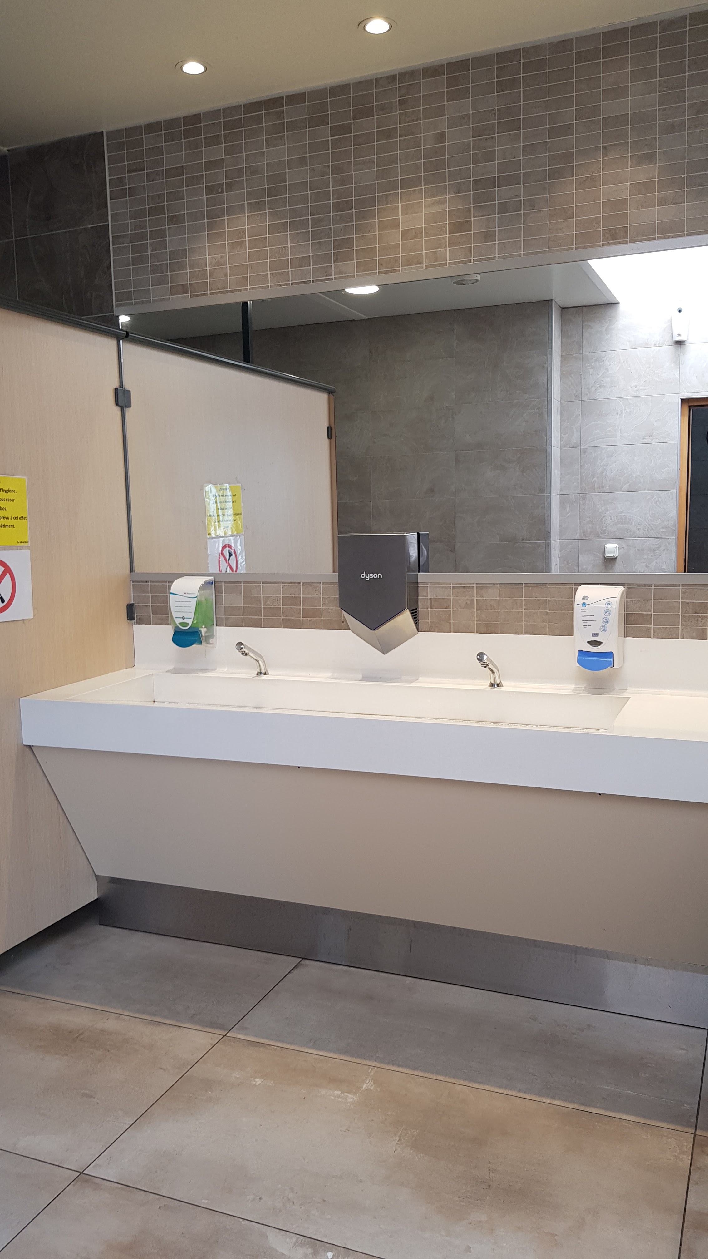 Relais avec des toilettes propres, nettoyées, parfumées ! Que c'est agréable pour les femmes et les hommes ! Et nous avons pu tester ceci sur 5 jours d'écart entre notre aller et notre retour de voyage. 👏