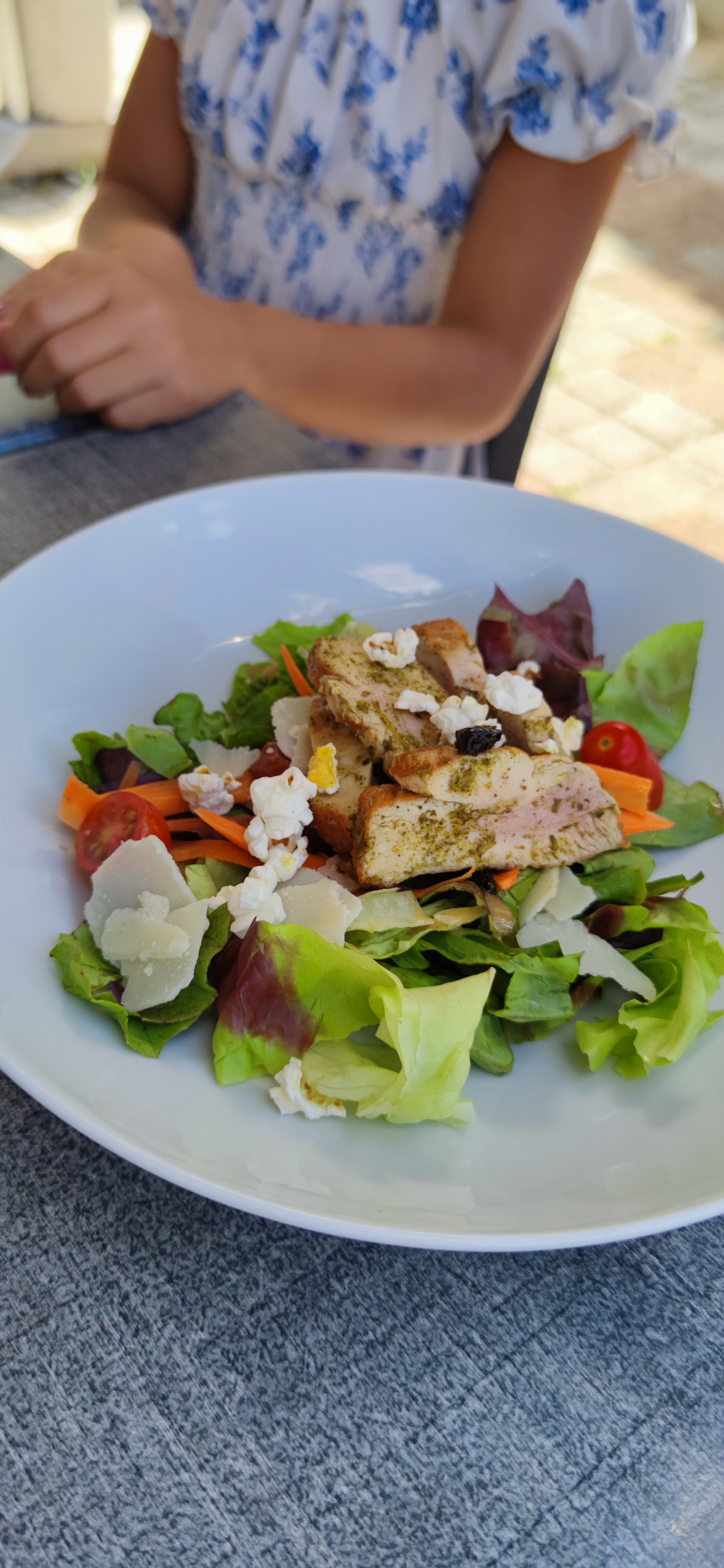 Déjeuner sur la terrasse ombragée . Très bien 👍🏼