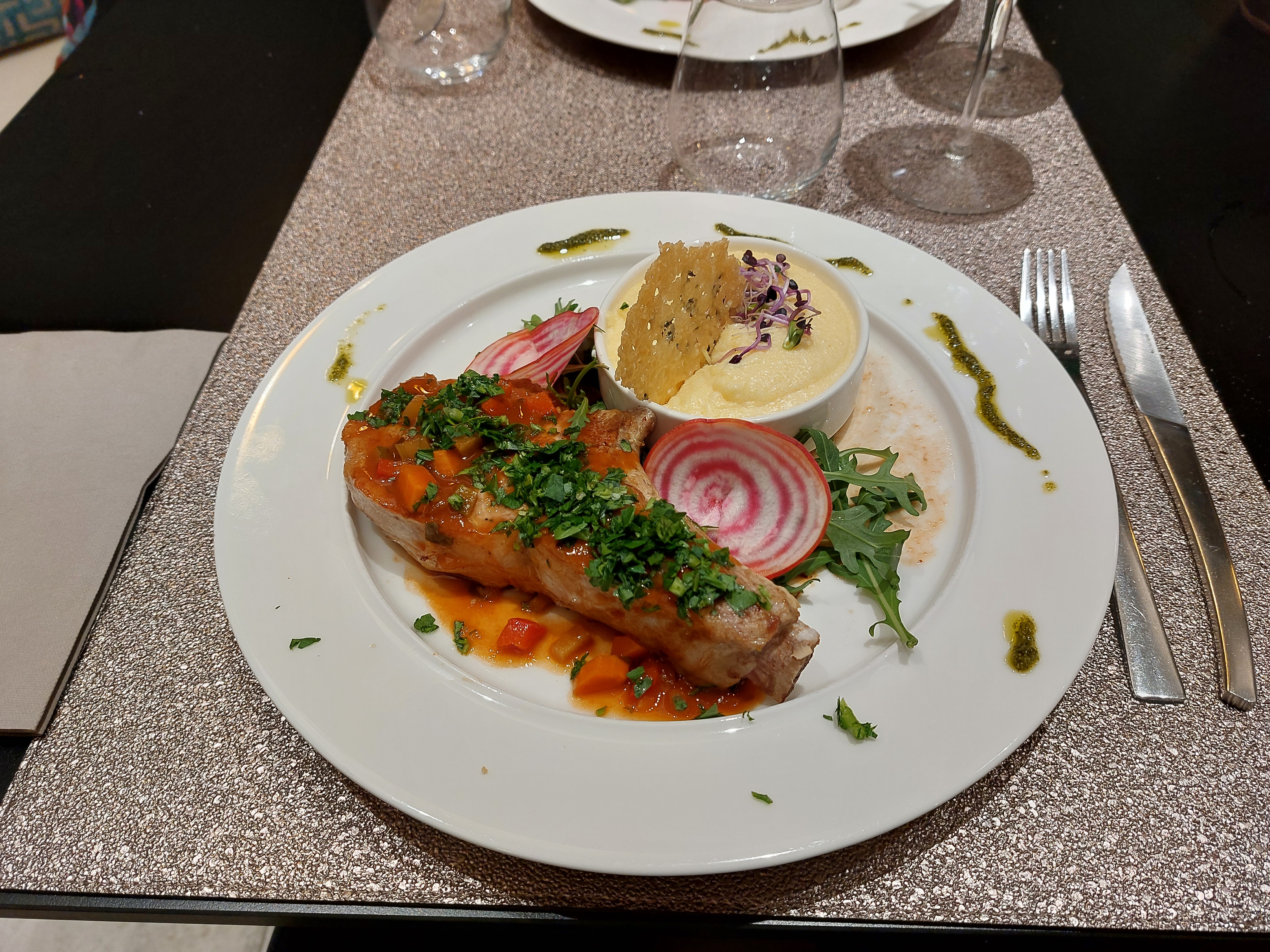 Le cadre de ce restaurant est incroyablement beau. D'une autre époque lorsque nous nous assayons à table, nous avons été conquis. Qui plus est, nous avons été servi rapidement. Malheureusement comme vous pourrez le voir sur les photos les plats manquaient d'assaissonement ce qui alterait les saveurs et les rendaient fades. Malgré de très belle présentation et dans un avis constructif, je vous recommande de revoir certains plats.