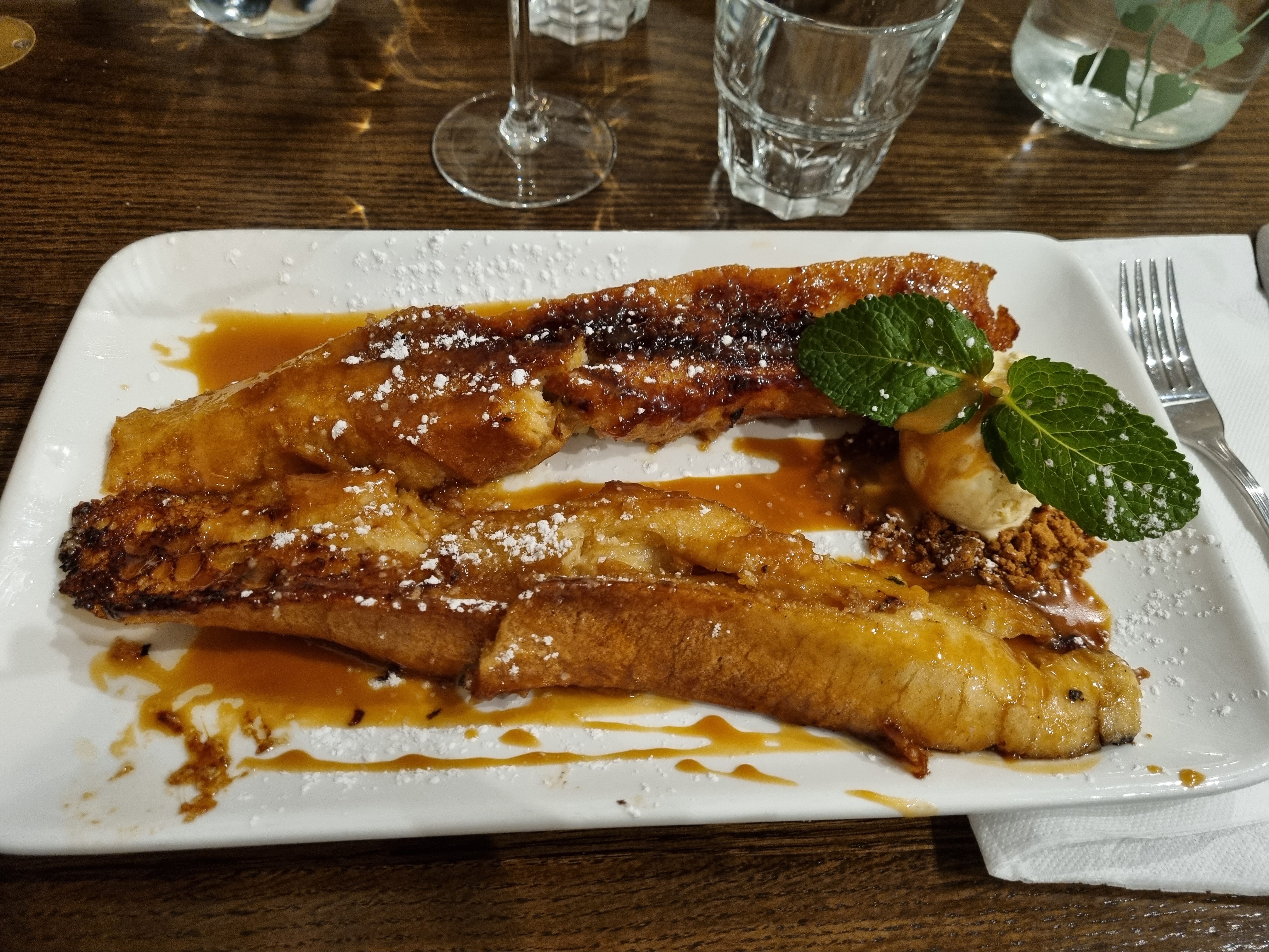 J'ai bien apprécié le burger au bleu d'Auvergne et le pain perdu en dessert. Très bon accueil et repas qui paraît simple mais adapté avec une recette de très bon niveau.