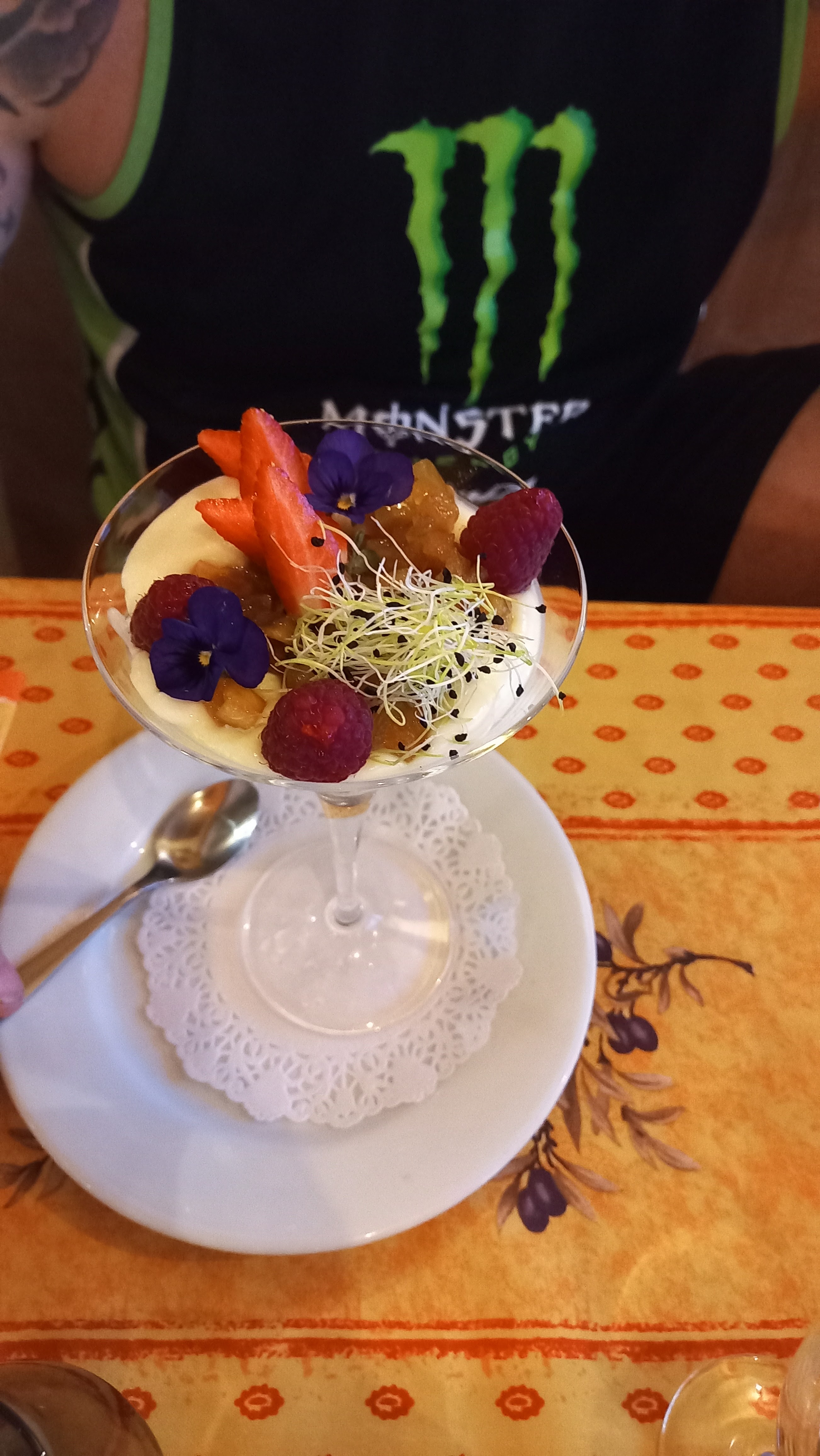 Nous avons très bien manger, super belle présentation du début à la fin. Un mélange des saveurs salé et sucré rien n'a dire un delice. Une vue magnifique sur la vallée. Personnel accueillant et bravo au cuisiner. Un beau mérite ! Je recommande. Nous reviendrons avec plaisir !