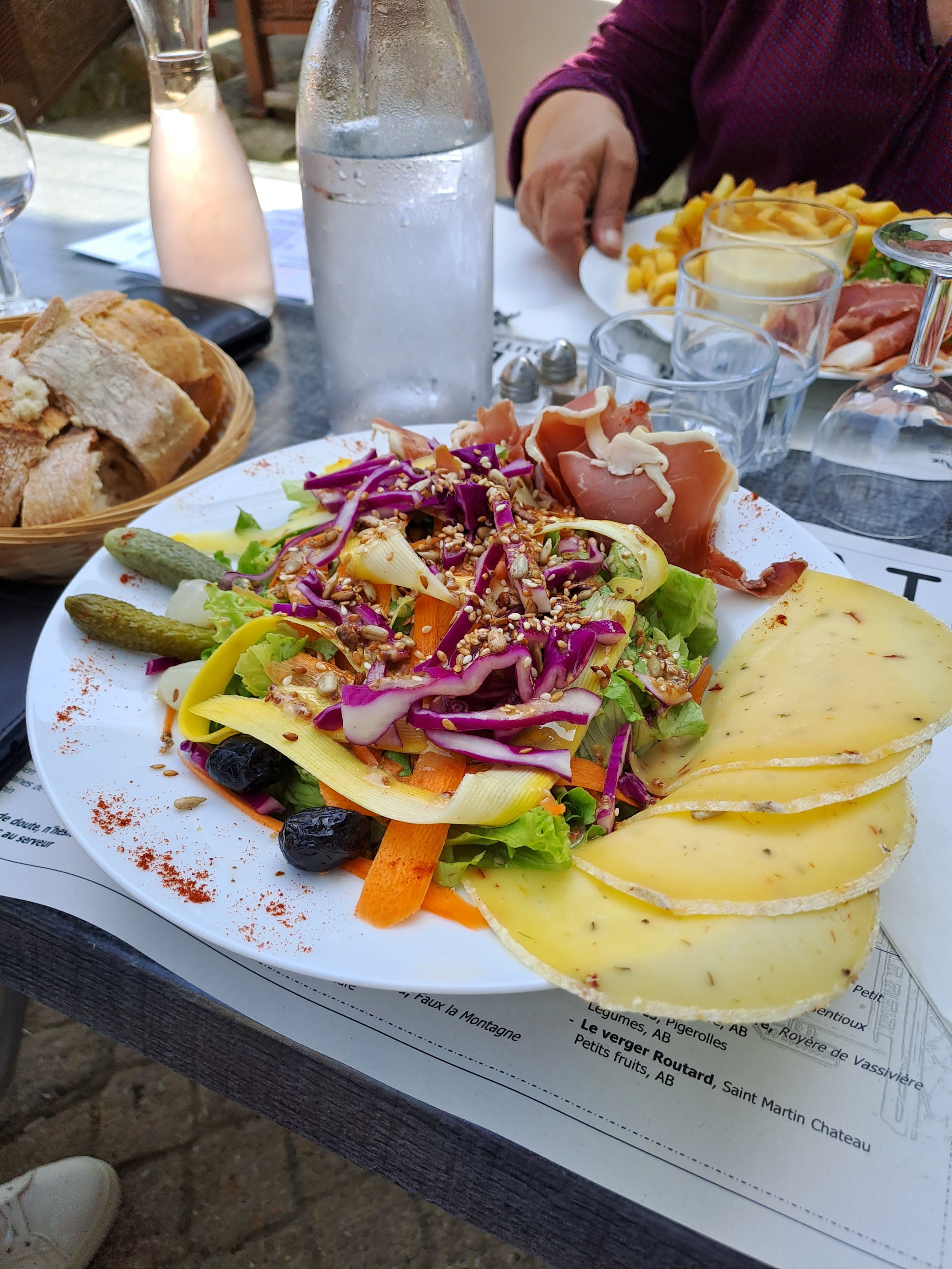 Nous avions réservé, très bien reçu. Plat du jour, assiette de fromage pour l'un et dessert pour l'autre. Bon et très copieux, appétit moyen on peut largement se passer de l'entrée.