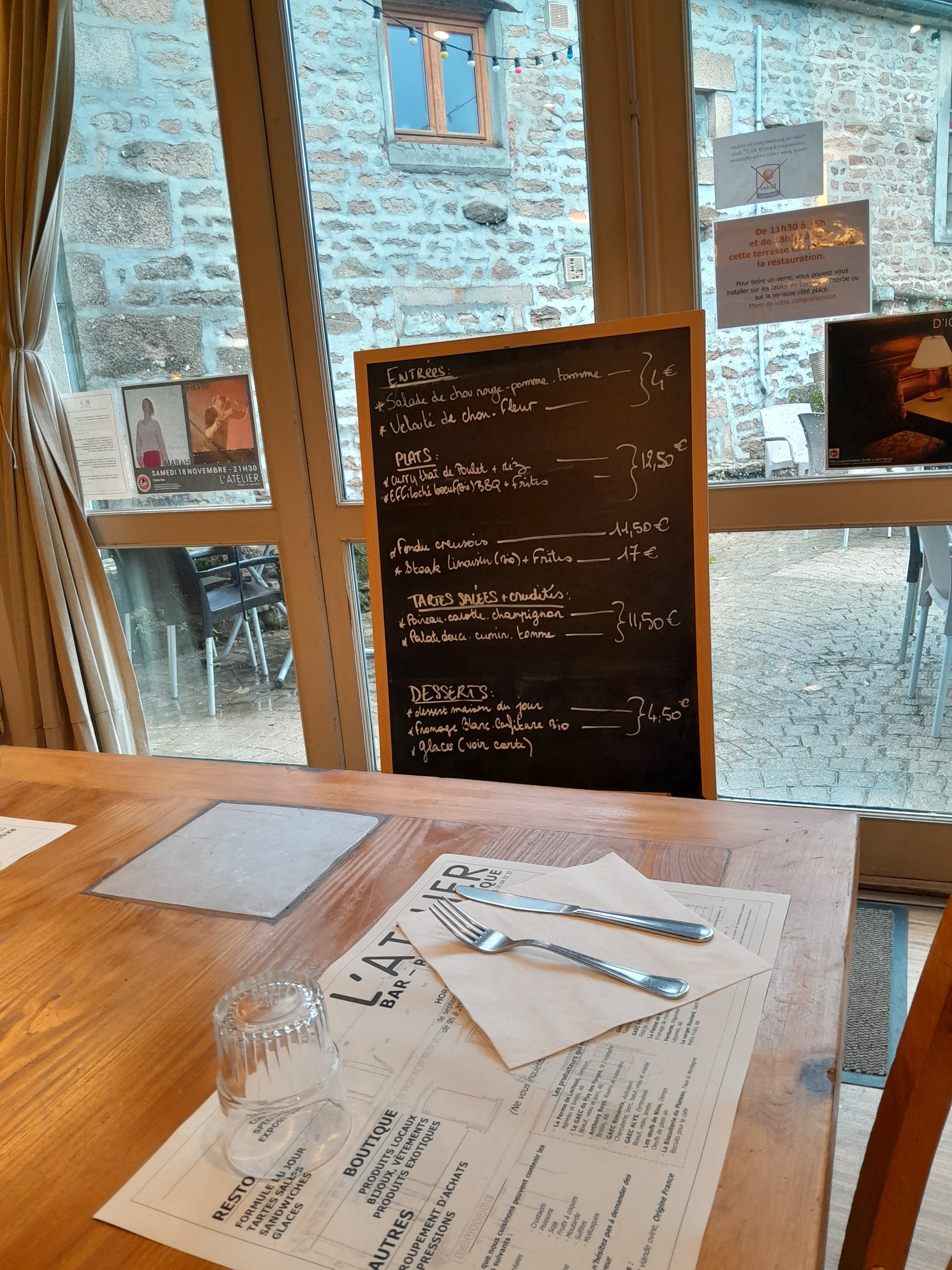 Posté le 12/03/2024 à 14:07"L'Atelier , lieu convivial , unissant des personnes de tout milieu social , des touristes de passage et qui propose une très bonne cuisine faite à partir de produits locaux . Equipe sympathique et j'adore ce lieu pour les concerts aussi . Je recommande l'Atelier ."