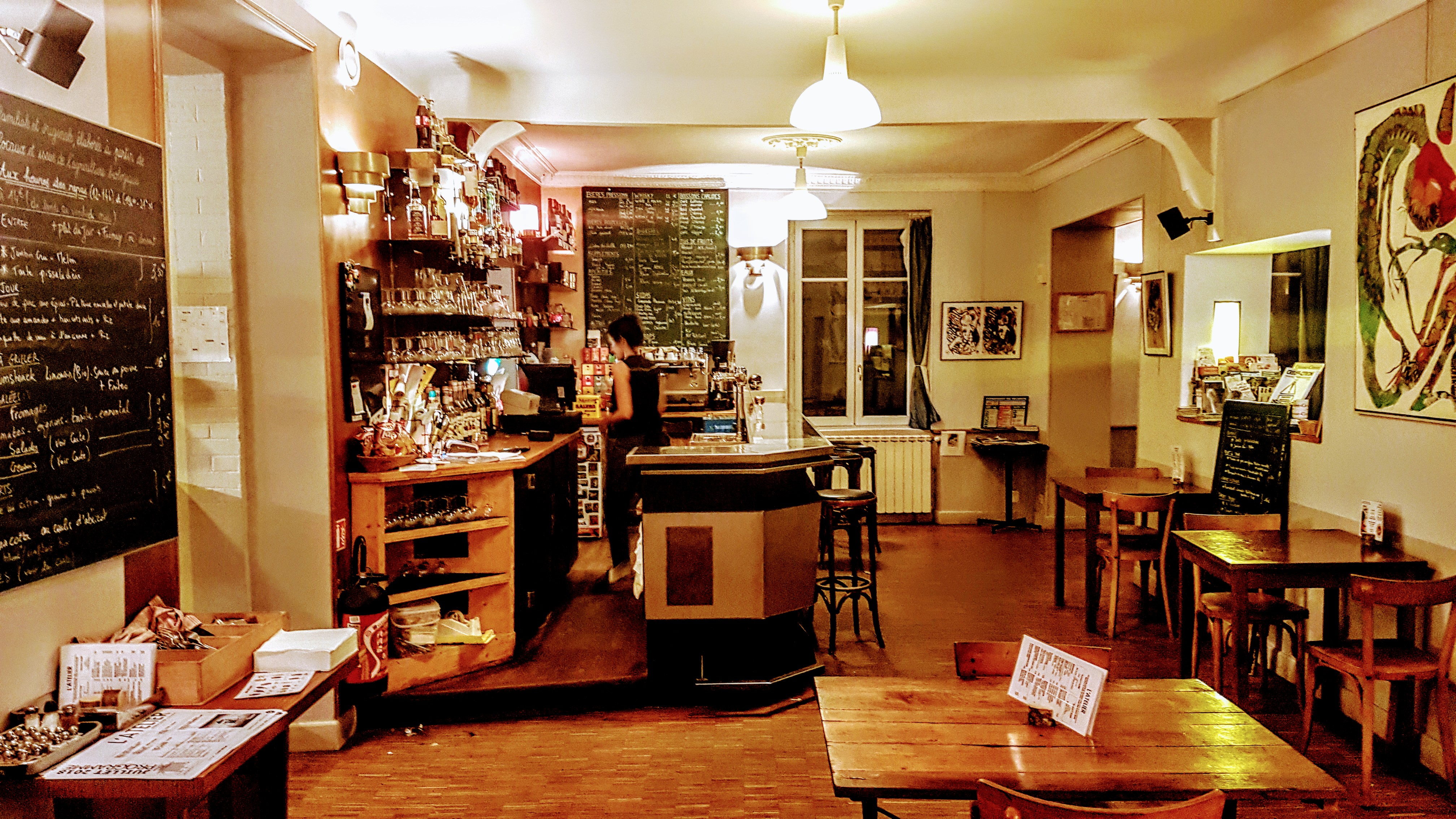 [EN] It doesn't seem like much from the outside but once within, you'll find yourself on a nice place where you can enjoy a drink and have dinner. Sometimes they even book in for a concert. [FR] Ça n'a pas l'ai de grande chose de l'extérieur mais une fois à l'intérieur on se retrouve dans un endroit joli où l'on peut savourer une boisson et prendre un dîner. Parfois on peut même assister à un concert.