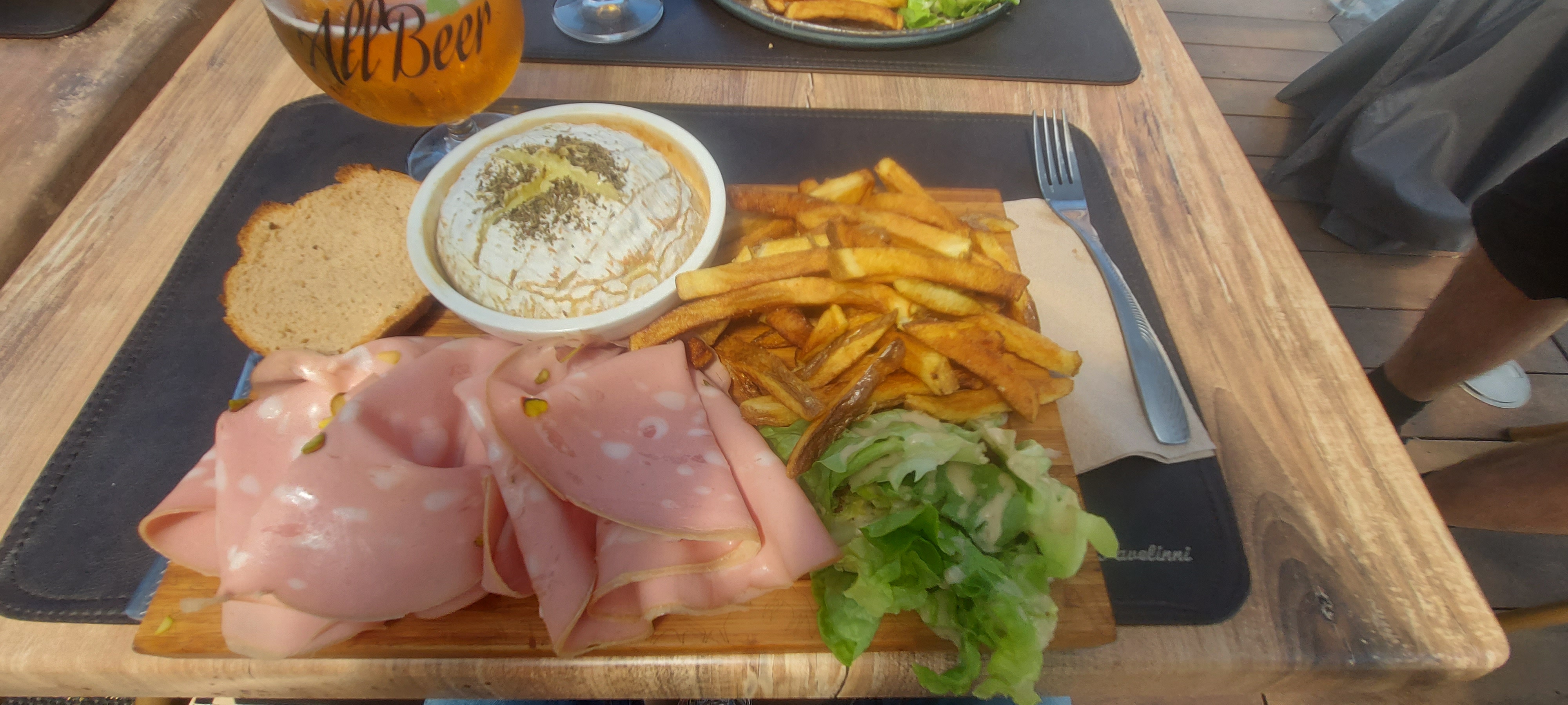 Tres convivial et copieux bonne cuisine et le plat camenbert roti vraiment bien bon je conseil les lieux et la boutique epicerie fine a de bon choix surtout le vin uby