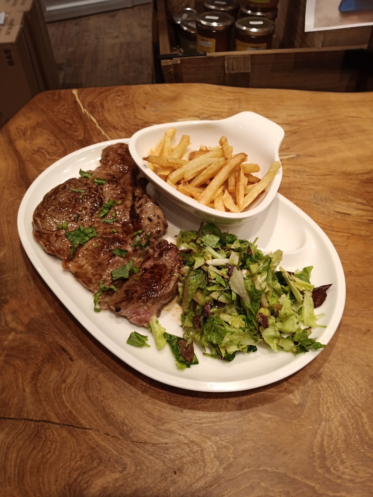 Entre épicerie fine et restauration ce restaurant porte bien sont nom, le très bon goût et la qualité est de mise et la gentillesse du responsable et du serveur sont a mettre en plus ... Je recommande fortement ...