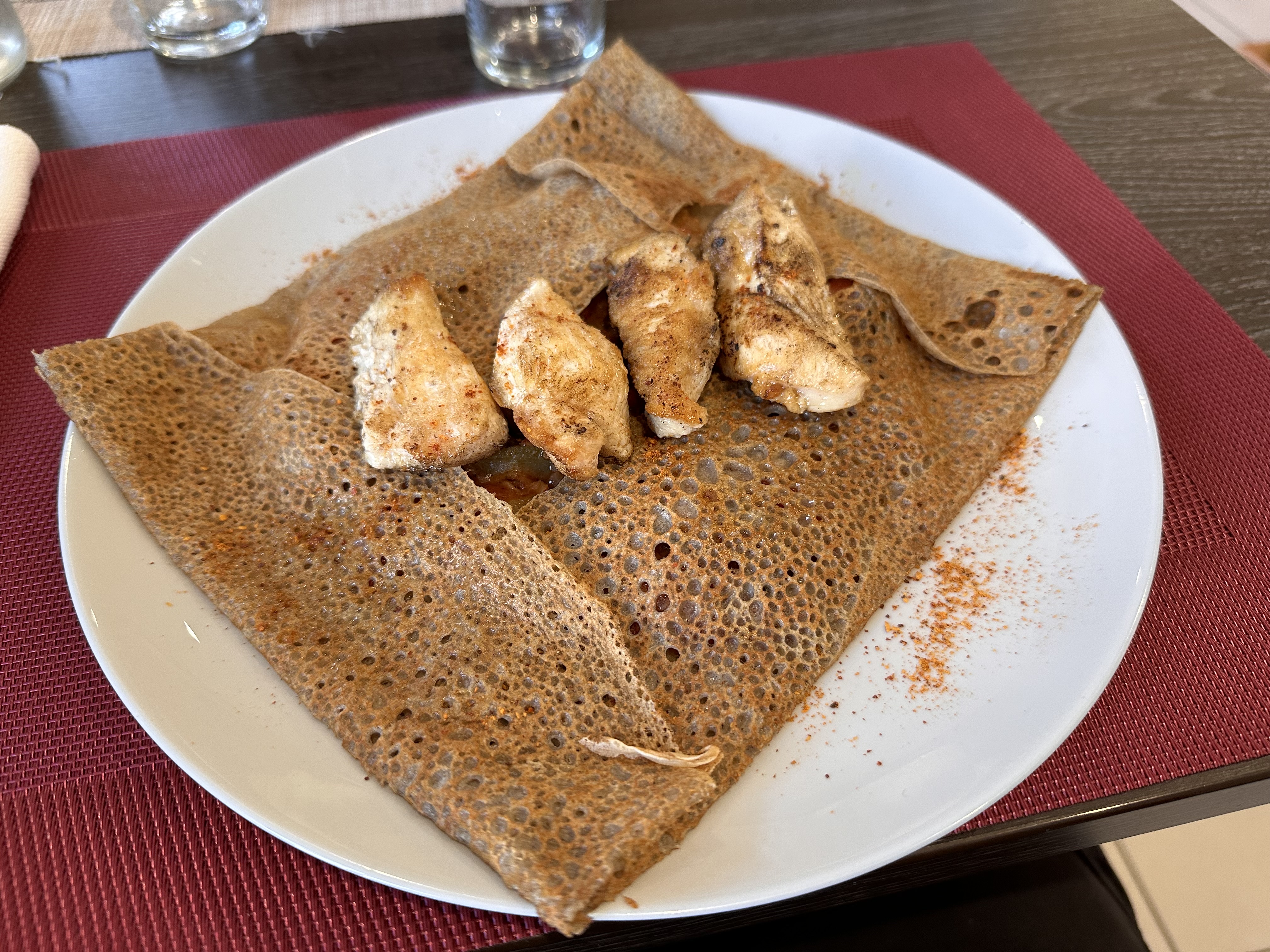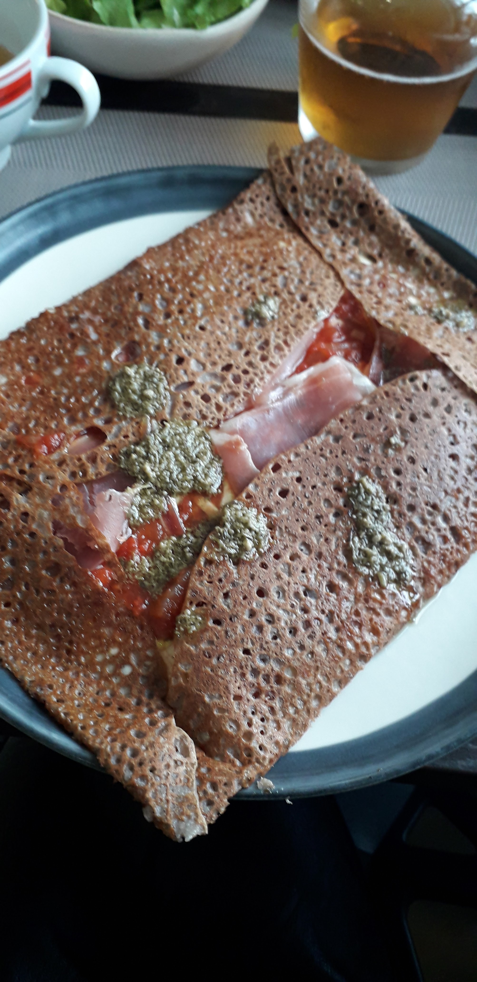 Excellentes crêpes! Idéale pour une pause déjeuner ou un goûter . Crêpes à la farine de noisette à ne pas manquer!!