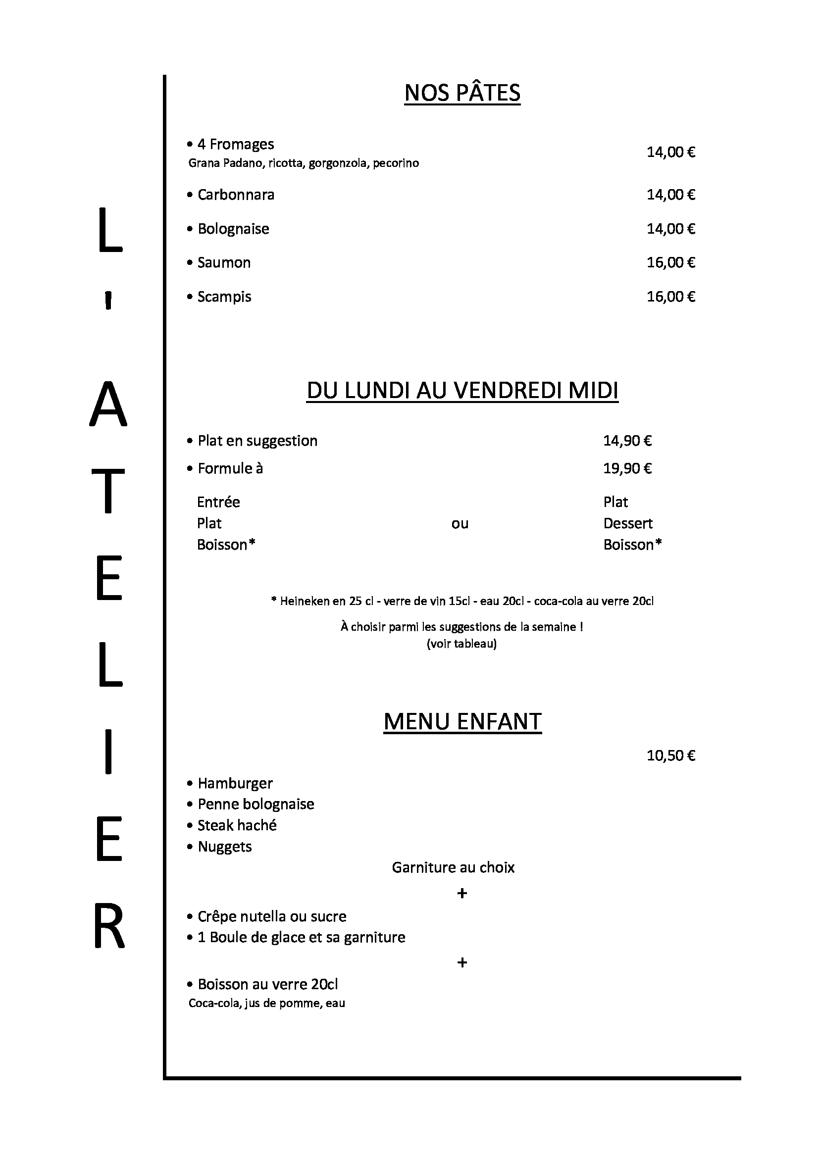 Bonjour Mr Courtois 🙂 Nous vous remercions d'avoir pris le temps de partager votre ressenti sur notre établissement. Au plaisir 🙂 L'équipe de l'Atelier