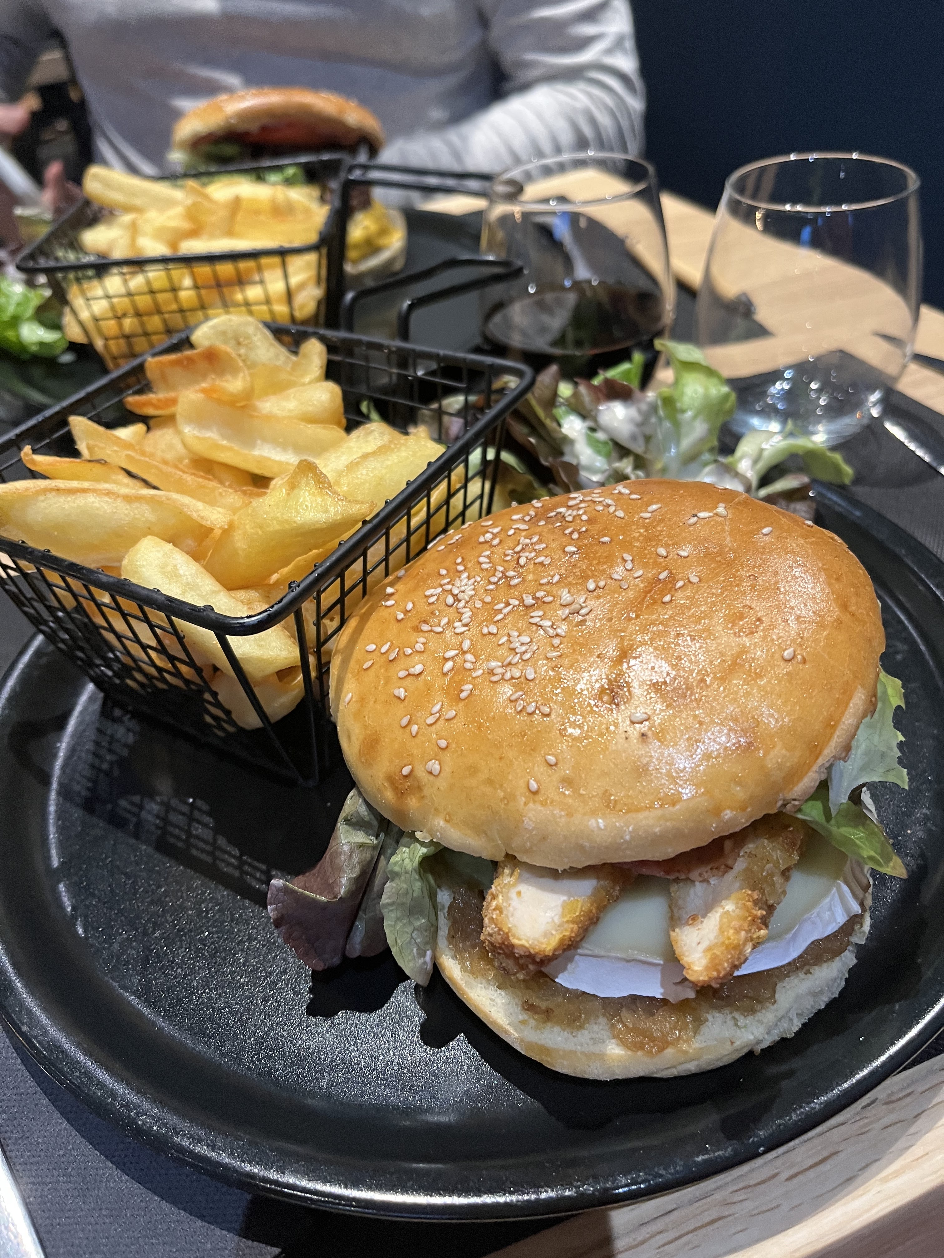 Décevant…suprême de poulet miniature (plutôt un suprême de poussin vu la taille), le pain du Burger à l’époisses complètement cramé, et des frites cramées également au point d’être dures et cassantes (à en faire mal dans la bouche…). Pour le prix, c’est hyper décevant.