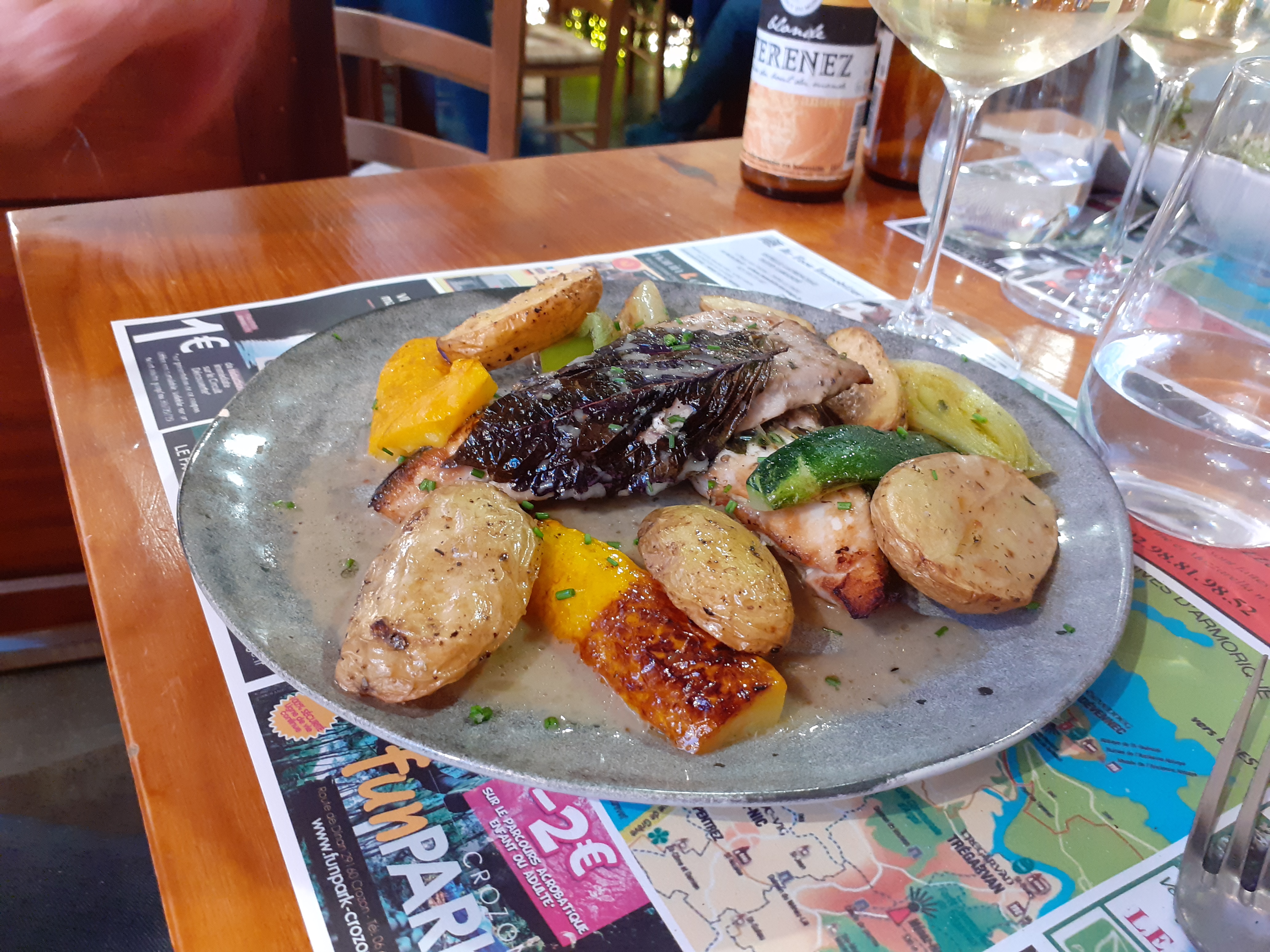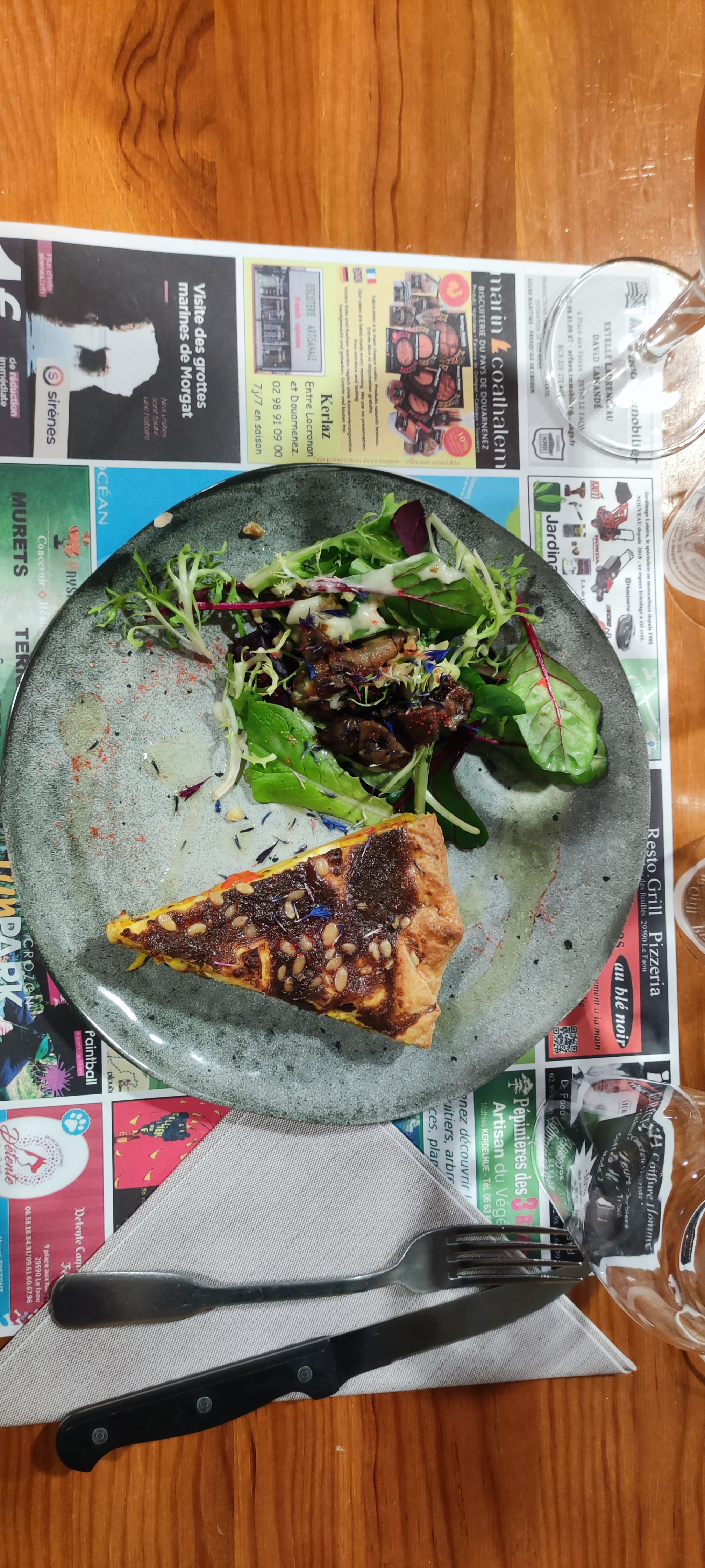 Des produits locaux, bio et de saison composent quelques plats traditionnels relevyé d'un peu d'exotisme, l'incontournable jambon à l'os maison et les delicieuses pizzas. Le décor et acceuil sont chaleureux. Un incontournable au Faou !