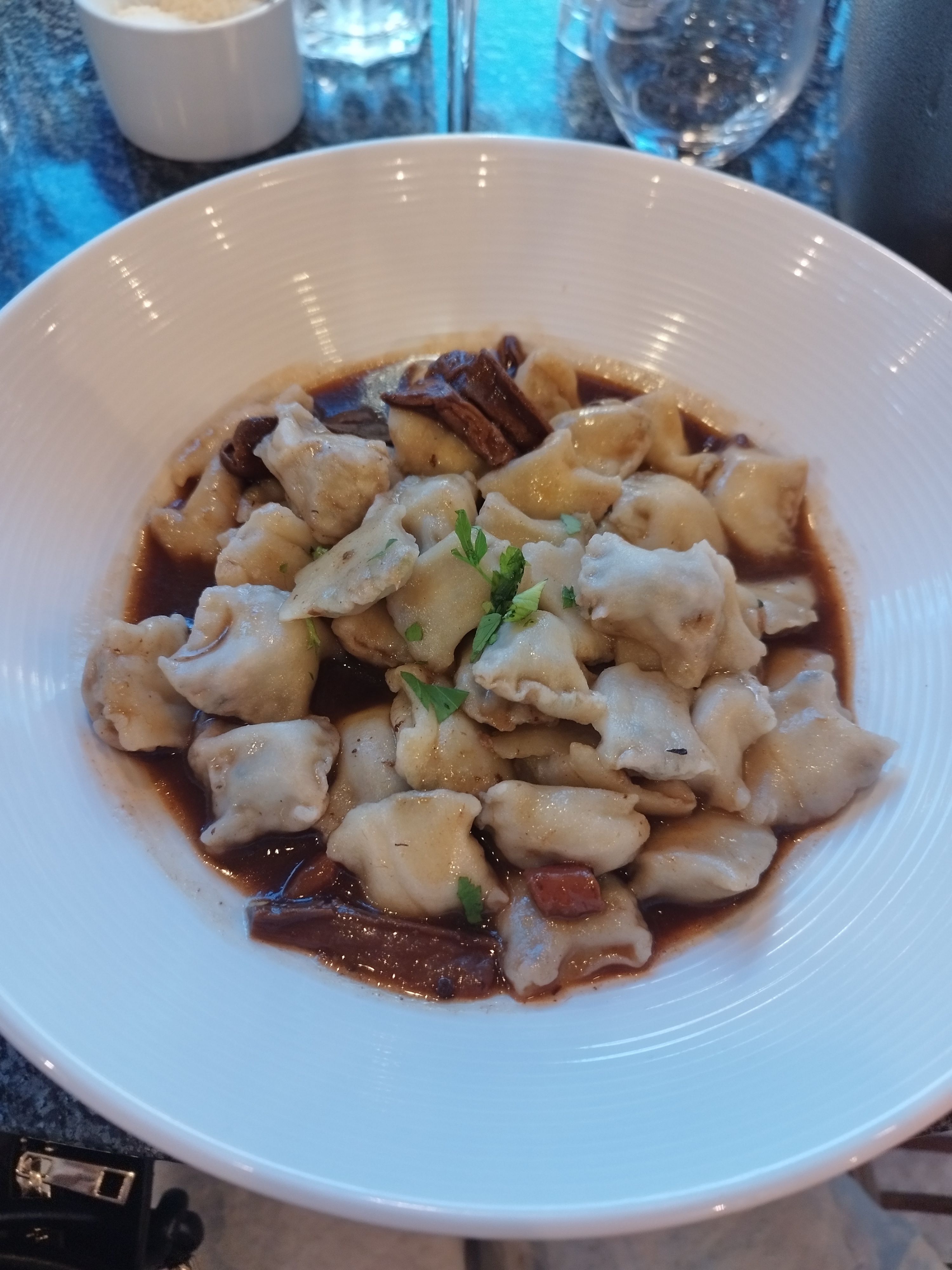Repas copieux ! Raviolis très bon dommage pour la sauce aux cepe, ne soit pas vraiment des cèpes mais plutôt de la l arome de cèpes que l on reconnaît à son goût légèrement amer. Accueil sympathique et convivial !
