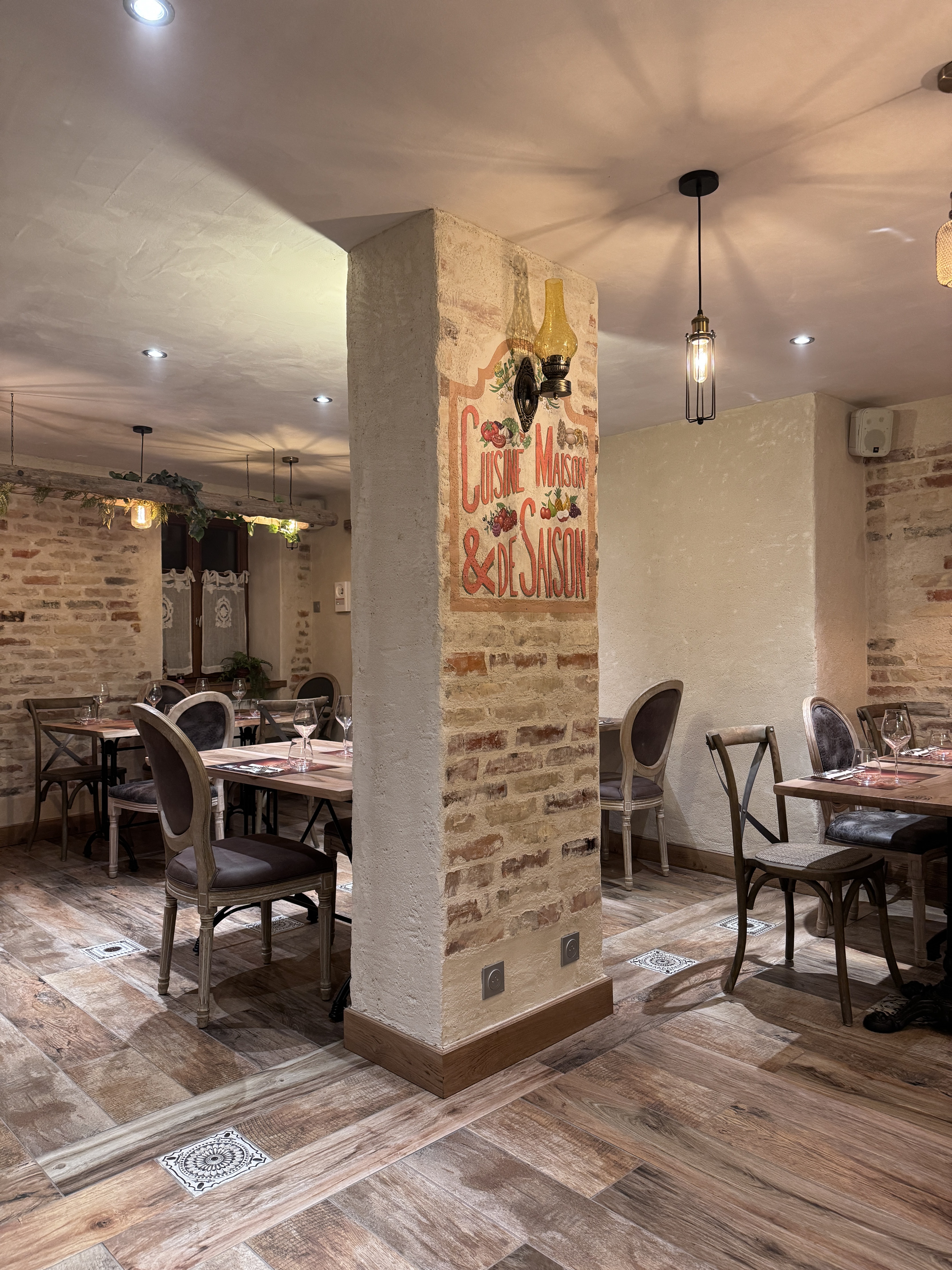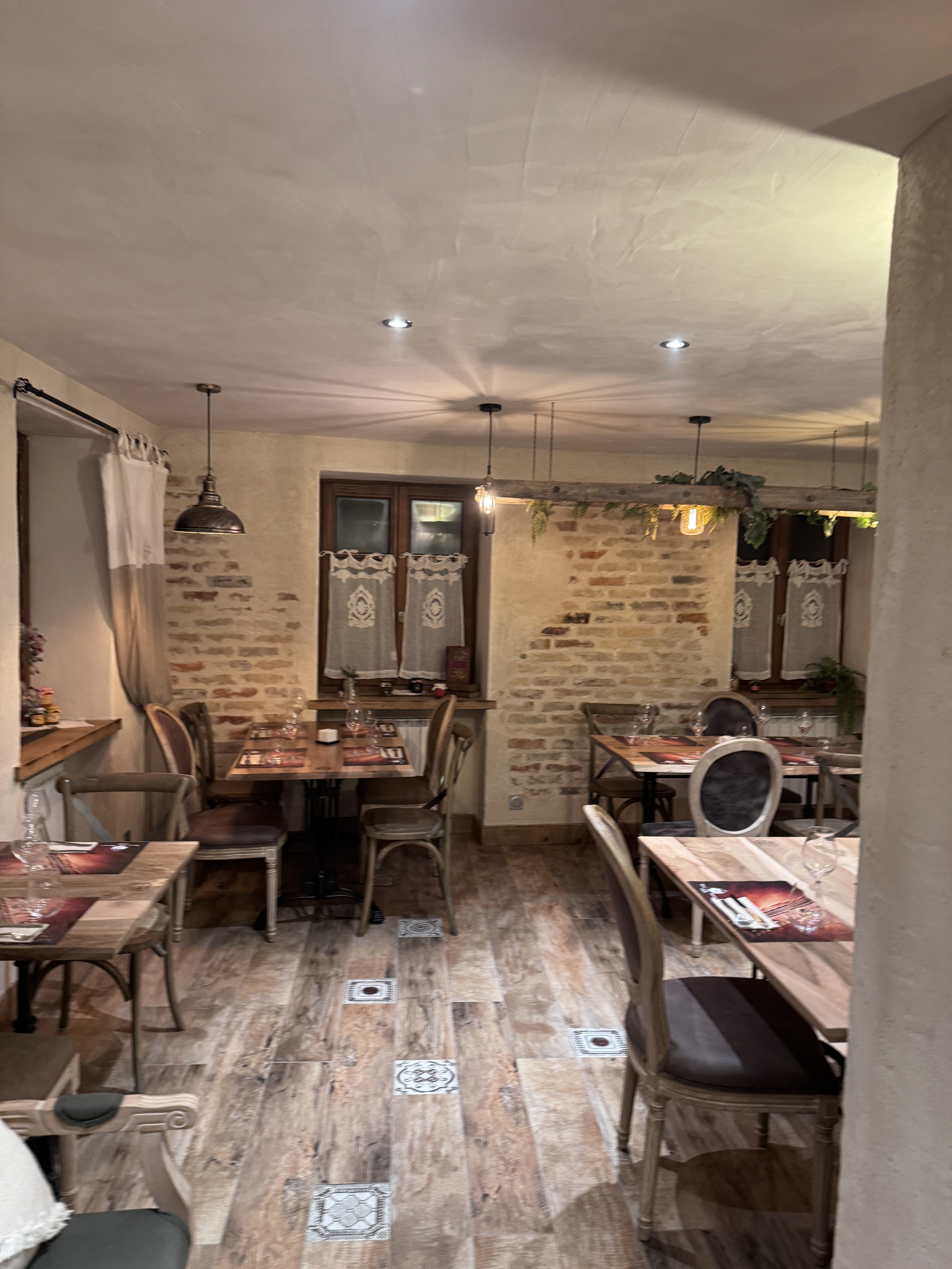 Cadre sublime de cette ancienne fruitière décoré avec goût. Malheureusement le reste ne suit pas, cuisine correct, service peu professionnel et alors la patronne n’en parlons pas, incompétente qui se noit dans un verre d’eau