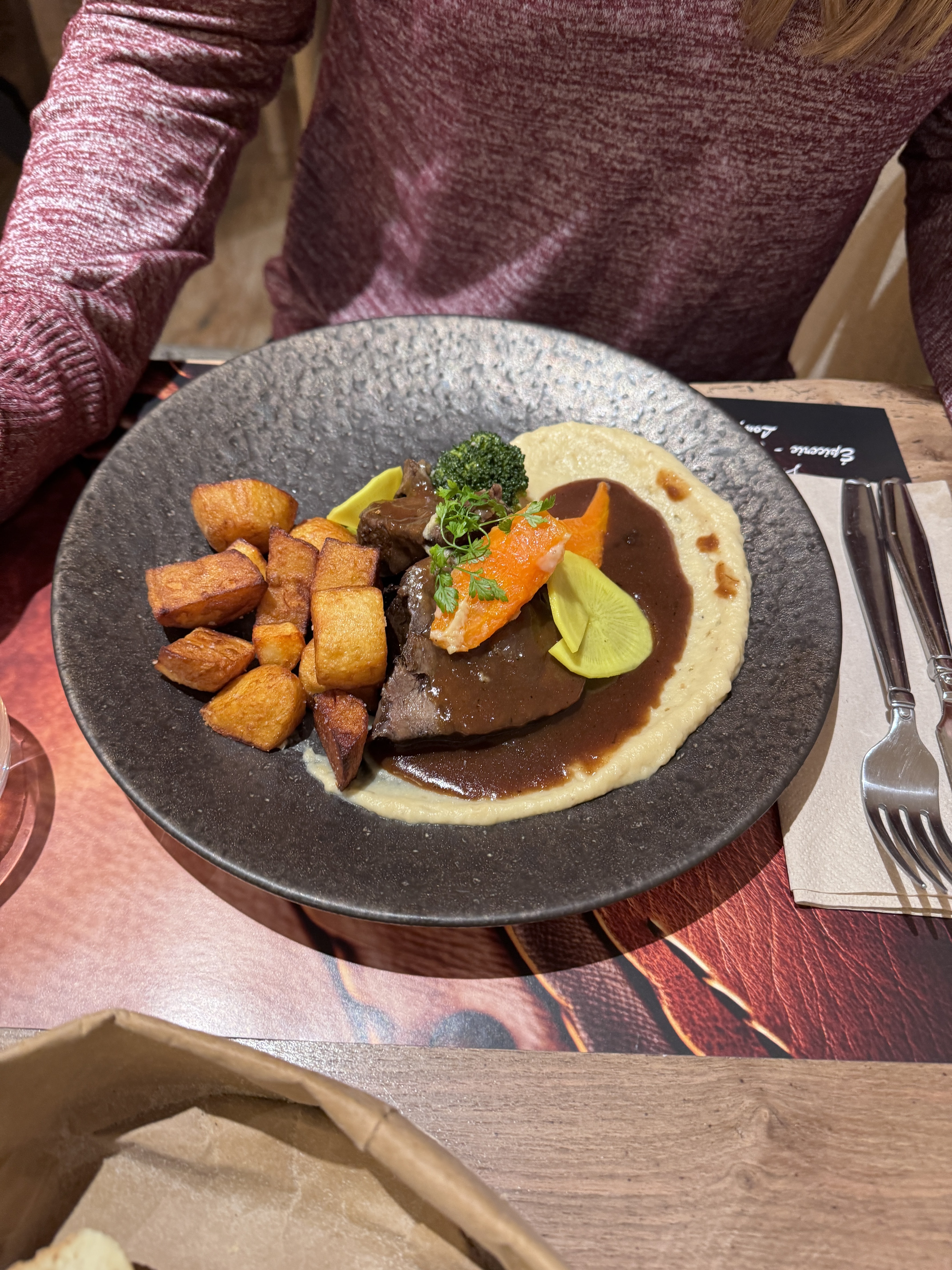 Nourriture et service fantastiques! Nous y sommes allés pour l'anniversaire de notre ami et avons vraiment apprécié la soirée ! C'était très authentique et local et nous semblions être les seuls non-Français là-bas ! Le service était super sympathique et attentionné et la nourriture était absolument incroyable ! Nous avons eu la fondue au fromage, le coq au vin et la tartiflette ainsi que des glaces en dessert ! Nous recommandons vivement le restaurant et avons adoré la nourriture qui y est servie !
