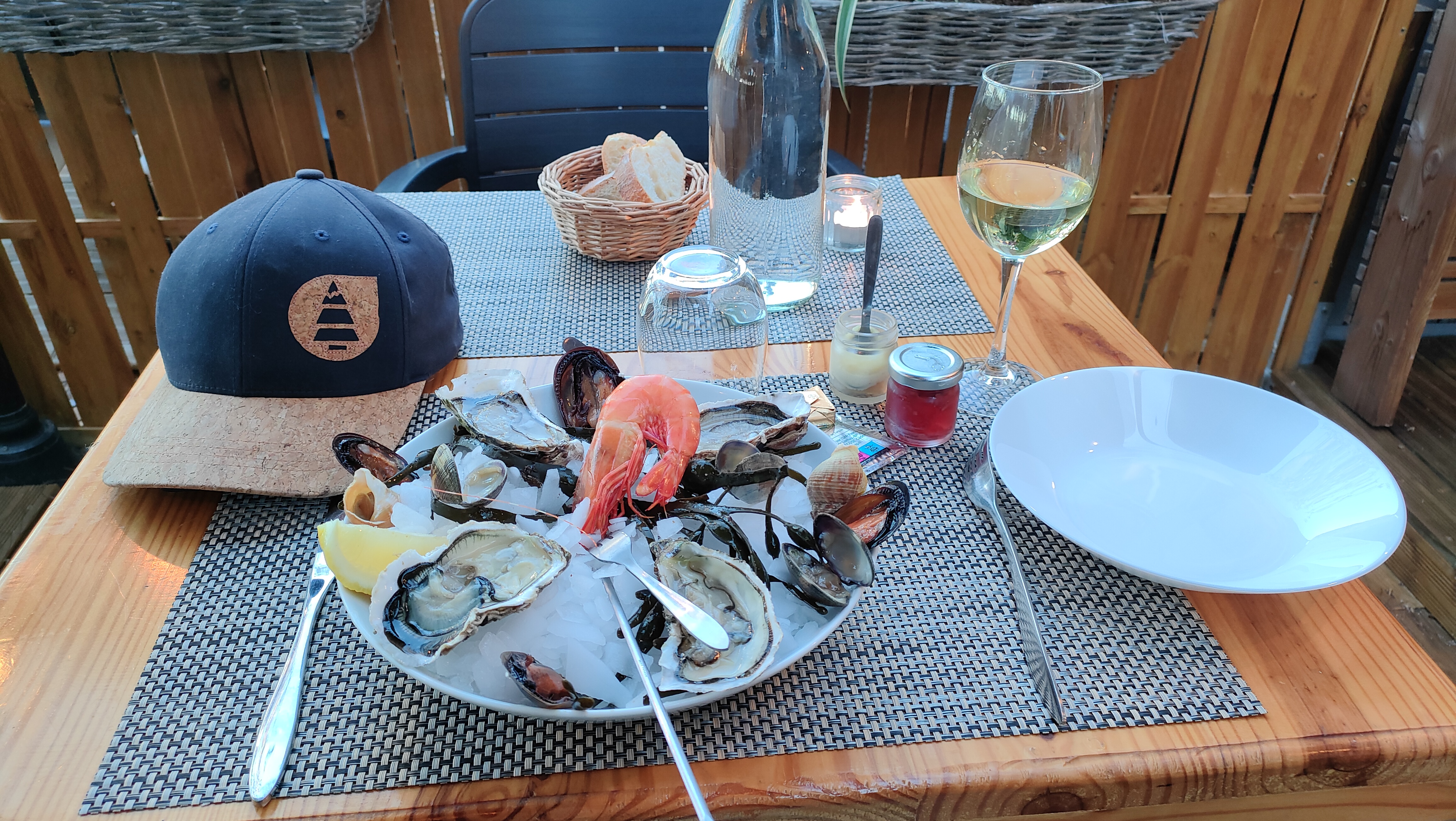 Petite terrasse en bordure de l'étang du Ponant. Ambiance calme. Le service est rapide et attentionné. J'ai beaucoup apprécié la possibilité de choisir tous les ingrédients de son plateau de fruits de mer, tant sur le type de produit que sur la quantité. J'ai bien aimé les couteaux et les St jacques marinés, vraiment délicieux. C'est un peu cher, mais ça vaut le coup car c'est vraiment très bon et tous les fruits de la mer sont très frais. En dessert, j'ai pris une ile flottante, rien à reprocher.