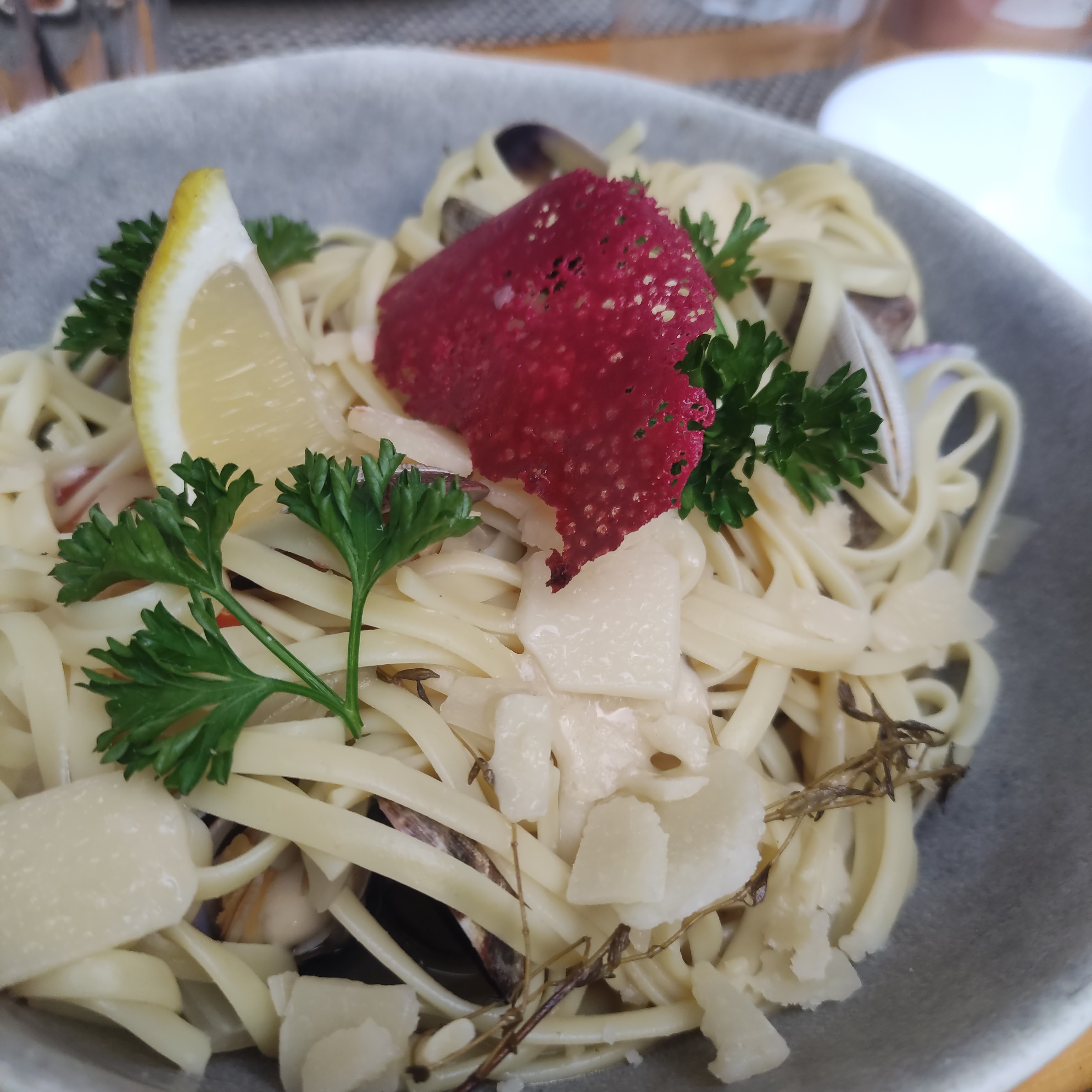 Nouveau restaurant sur la grande motte au quartier du ponant. Nous avons été agréablement reçu par la responsable des lieux. Carte réduite, pour des raisons de fraicheur. Mais la diversité est bien présente. Le carpaccio de gambas une réelle surprise pour les papilles Les linguines aux palourdes, sont absolument bien préparées. Le service est discret et tres courtois. Ce restaurant détonne avec les usines à touristes que ne savent que présenter des pizzas et des moules marinières et autre burgers. Bref restaurant a faire sans détour