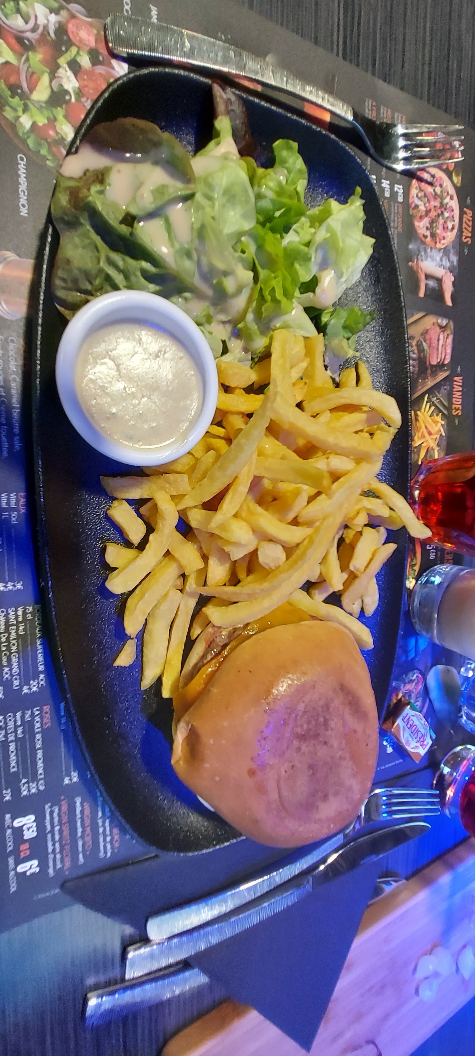 Parfait,super ambiance,serveur et patron très sympathiques et a l ecoute de leurs clients. Plats vraiment copieux et délicieux,de qualité. Très bon rapport qualité prix contrairement à ce que j avais pu entendre.. je vous recommande à tous d 'aller y manger ,passer un. Moment entre amis . Allez si je veux mettre un point négatif...mettez de la vraie limonade dans le diabolo😉sinon c est parfait