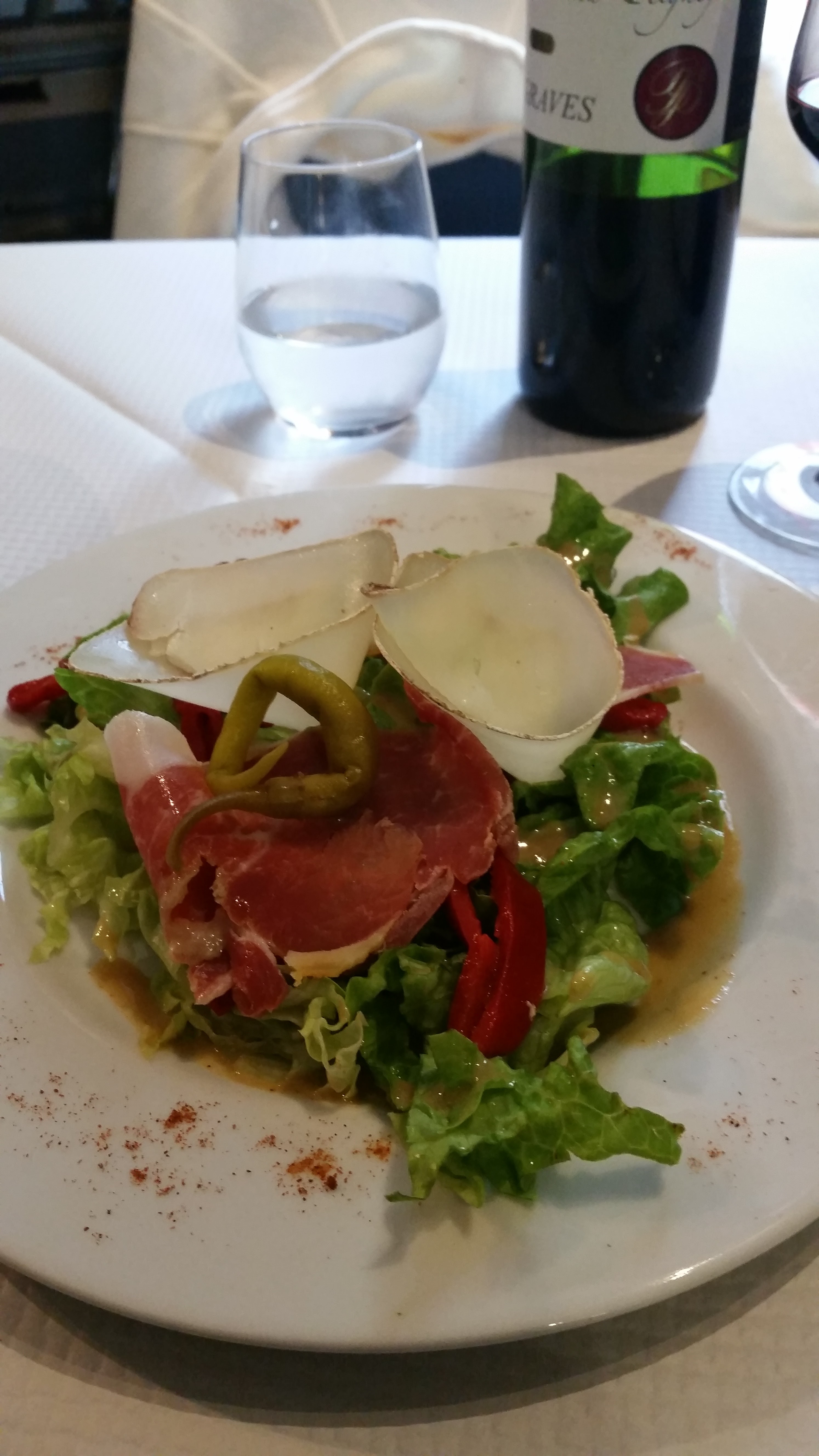Menu du jour quelconque. 19 euros quand même ! Gaspacho fade. Servi sans les bons couverts. Sans les tuiles de Serrano qu'il faut réclamer. Pas salé ni poivré... Pas de salière ni poivrière. Donc on mange fade. On ne respecte pas la commande et on vous sert autre chose sans vous laisser le temps de dire ouf!! Donc j'avais déjà réclamé pour l'entrée.... Donc je mange le riz sec, fade et le saumon baignant dans une sauce dont on pourrait discuter le côté fait maison. Toujours sans sel sans poivre mais a température. Le dessert : panna cotta qui ressemblait beaucoup a une crème chocolat qui aurait mérité au moins l'absence de grumeaux. Bon... Pas loin de 2 heures pour ce service très très lent. Aucune vengeance dans ce témoignage. La dame a reconnu les manques en me faisant cadeau du vin. Un grave bon mais sans plus. La terrasse est bien mais il faudrait vraiment soigner la cuisine.