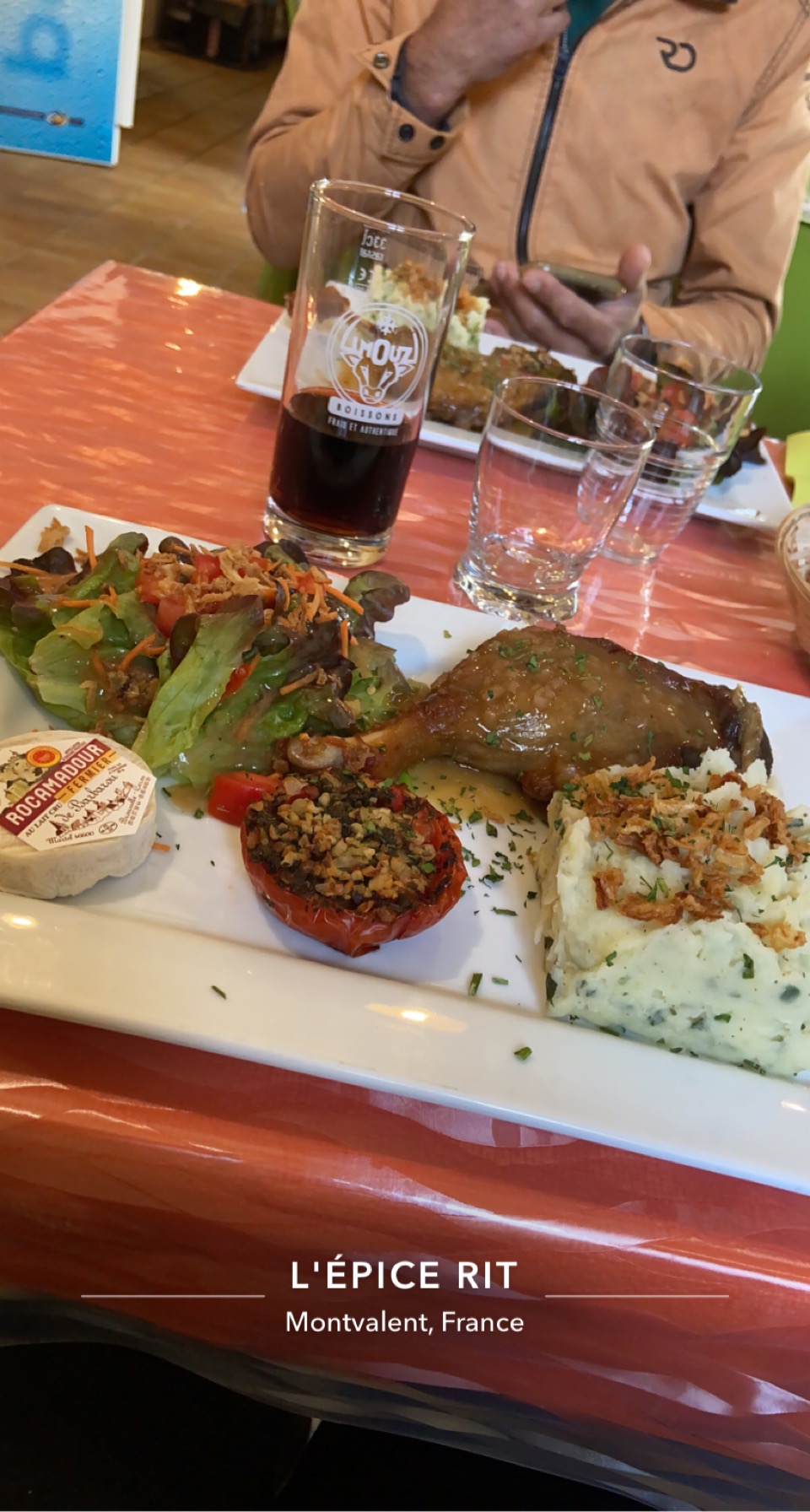 Comment ne pas récompenser un restaurant tout récent comme cette épice rit par 5 étoiles ?! C'est excellent, et je le dis avec du rocamadour au lait cru dans ma salade, avec du magret de canard... Top ! C'est du maison, comme le reste, avec l'épicerie à dispo si vous voulez emporter, et notamment du foie gras, des fruits... C'est très bon et accessible côté prix, il ne faudrait pas manquer cette adresse où on écoute de la bonne musique et où on se sent comme à la maison, avec un cuisinier en cuisine 😉 C'est ce que nous cherchions. Perfect !