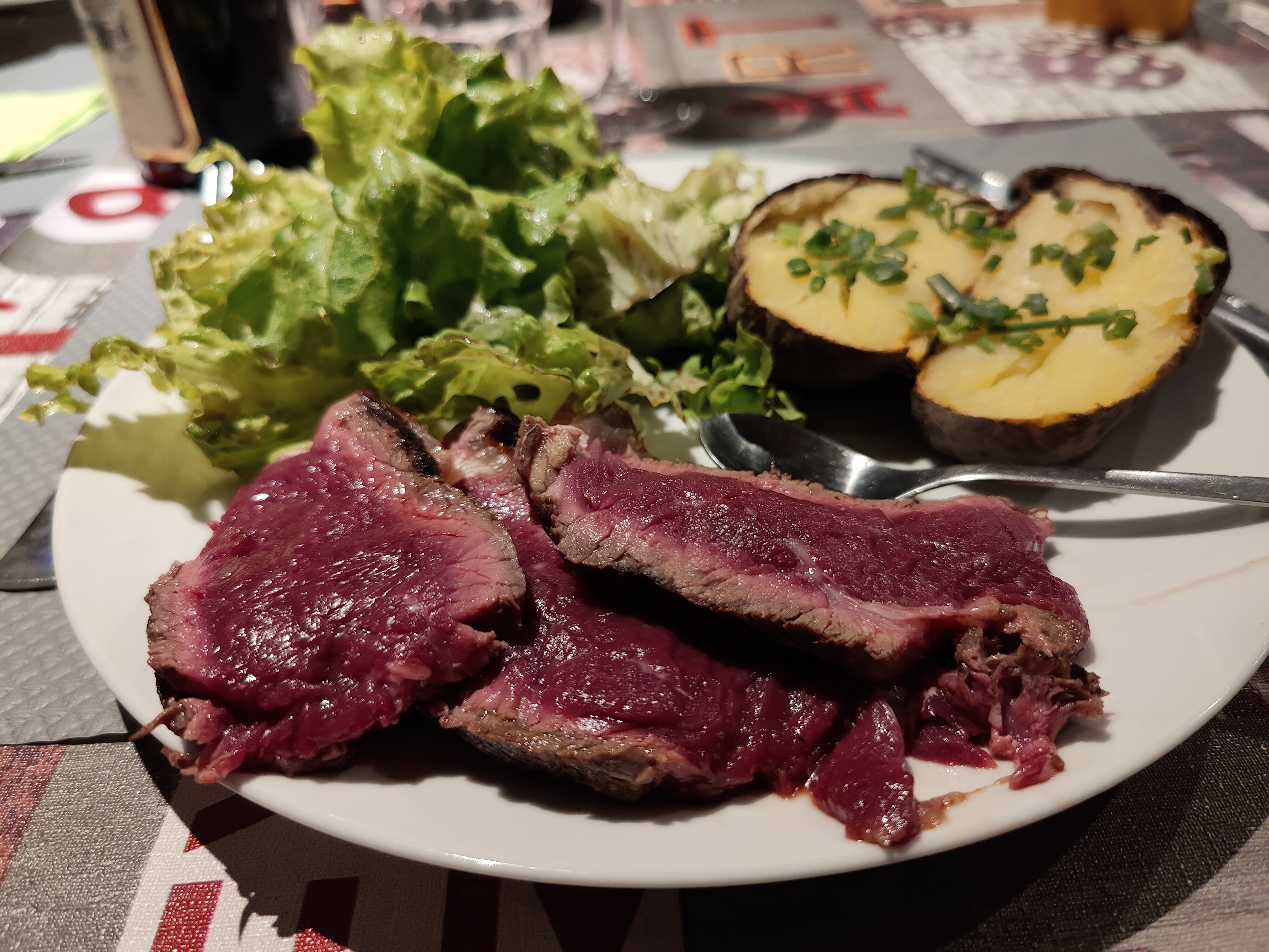 Nous ne venions manger qu'à midi à la sortie du château. Tout est fait maison et délicieux. Très bonnes planches de fromages et de charcuterie. Bon prix/qualité. Surtout dans une rue à l'écart de la route, calme et silencieuse.