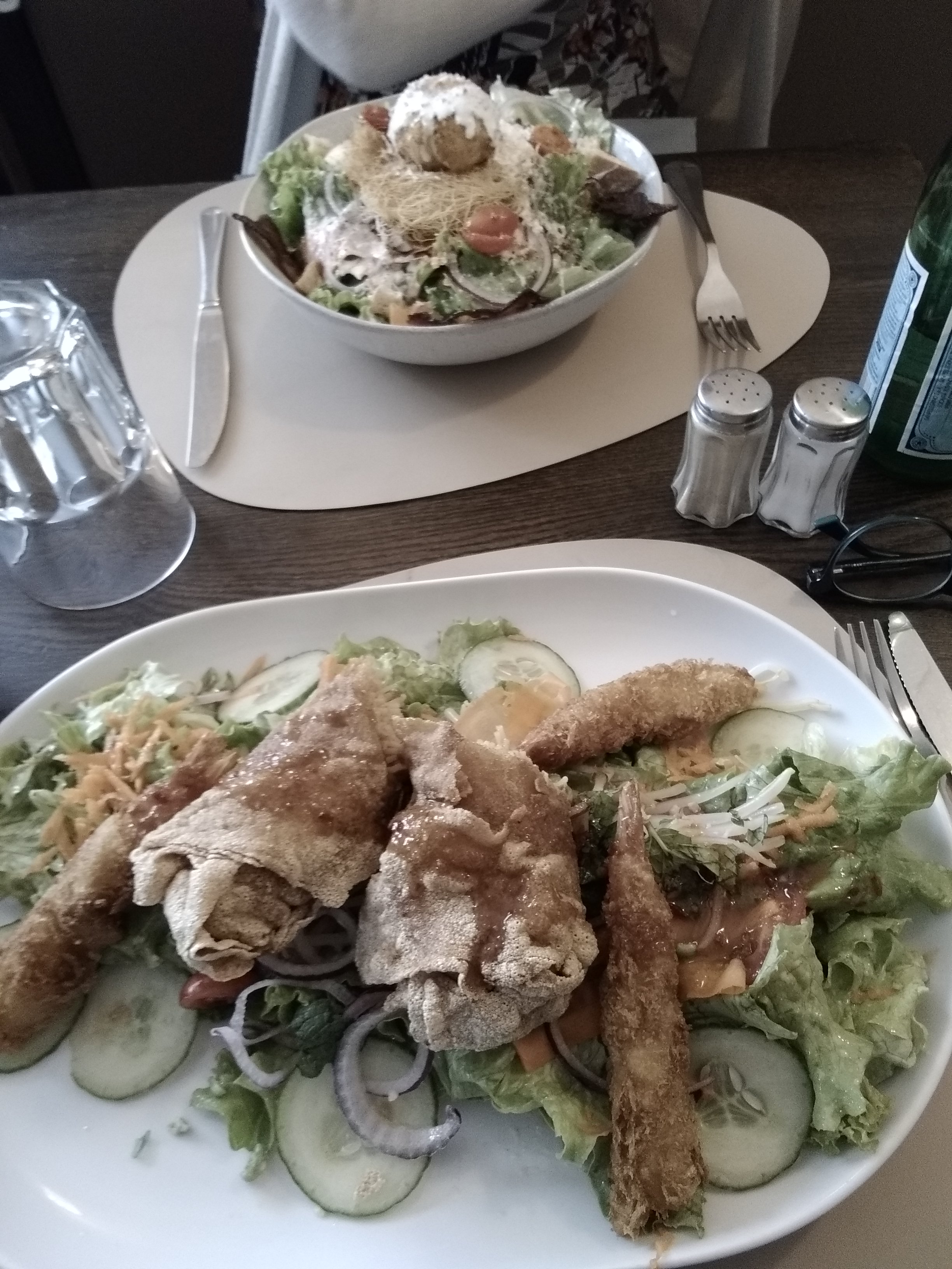 Petite soirée fort agréable, personnel sympathique et courtois. Salades composées copieuses, à recommander sans hésitation