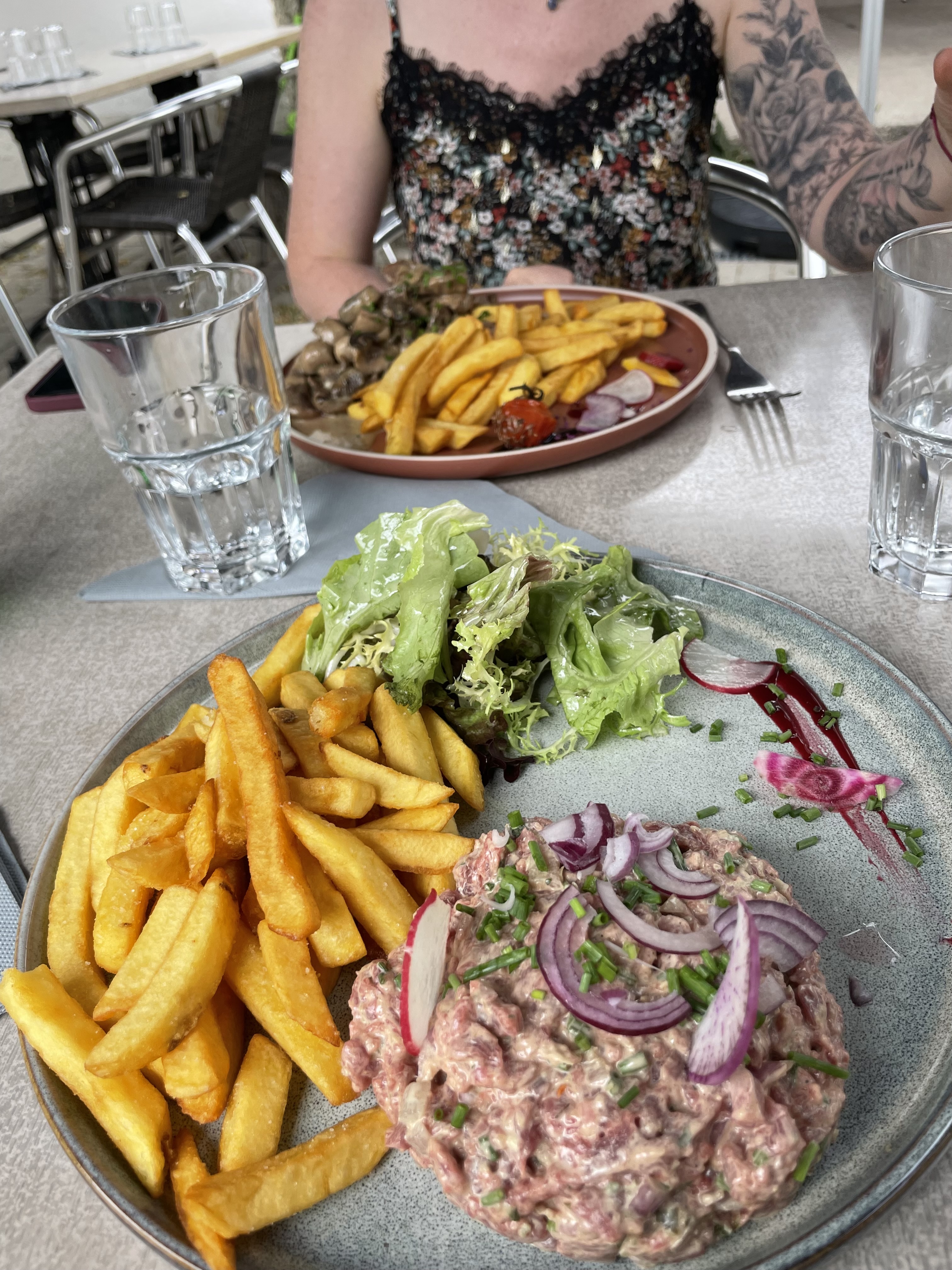 Arrivée à 19h comme prévu, service au bon timing pour 4 personnes. Plateau à partager en entrée, puis 1 salade campagnarde, 1 cordon bleu, 1 tarte de boeuf et un onglet et bien tout est copieux et très bon avec une recommandation pour le tartare qui est excellent, bref une adresse à conserver avec également des tarifs abordables