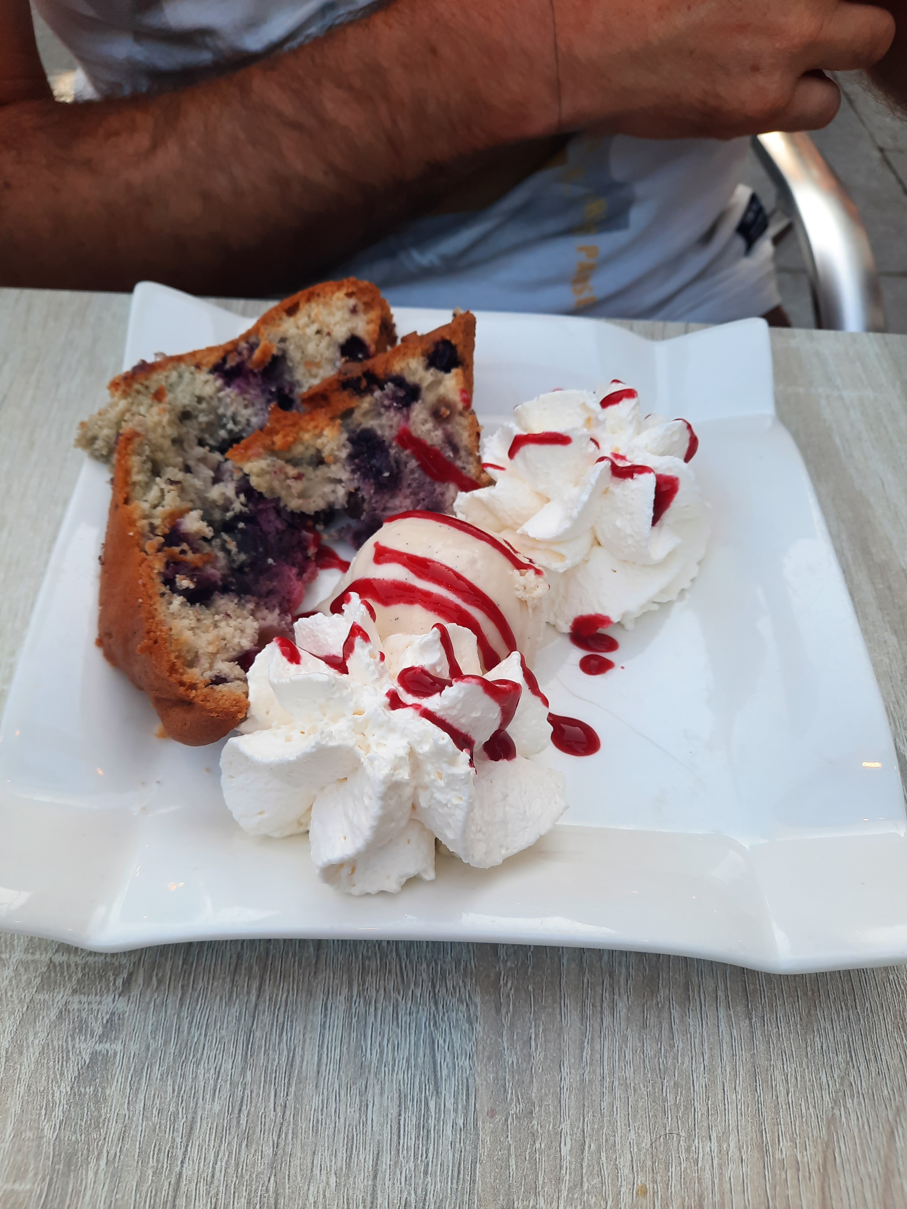Durant notre séjour nous y sommes passes plusieurs fois pour une boisson et coupe glacée. Glaces vraiment très bonnes. Nous y avons dîné également excellente tartiflette. J'ai toutefois été déçue que lorsque nous sommes arrives pour notre repas nous avions réservé a 19h on nous a précisé attention votre table est réservée il faudra la libérer pour 21h. A trois reprises on a essayé de nous débarrasser nos plats alors qu'ils n'étaient pas terminés nous sommes donc partis sans dessert, ni café. Tout le long de notre repas le restaurant n'était pas complet. C'était notre dernière soirée et même si deux heures pour le repas était amplement suffisant nous n'avions pas envie d'un attention il faut libérer la table alors que nous avions réservé....