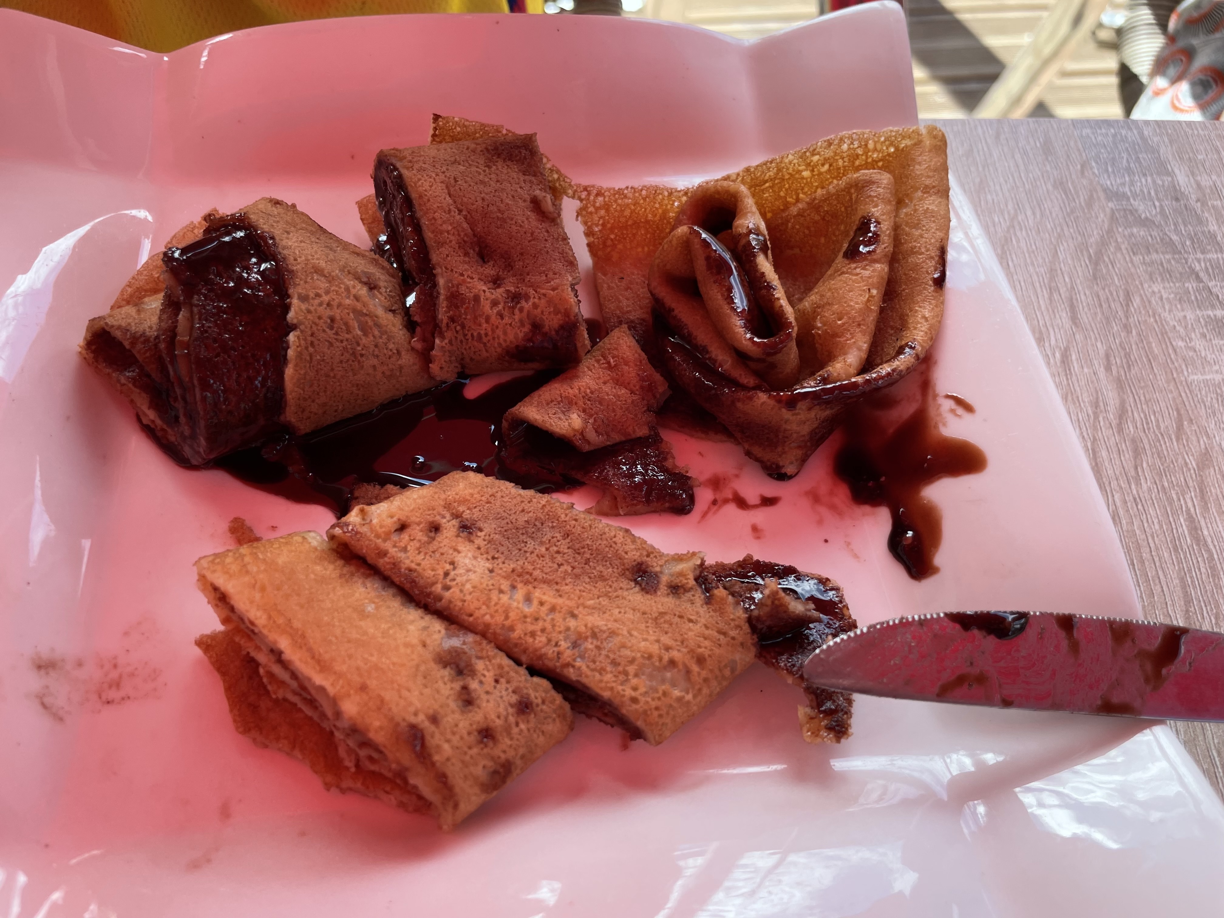 Posté le 30/10/2024 à 15:36"Nous y sommes allee pour 15h dans le but de prendre un dessert Il n’y avait pas grand monde Mais la prise de commande était longue Nous avions 2crepes et une glace La Deuxième crêpe il n’y avait pas de chocolat dedans Juste en déco sur le dessus partiellement Il aurait peut être fallu réitérer l’expérience Mais le temps nous manquait"