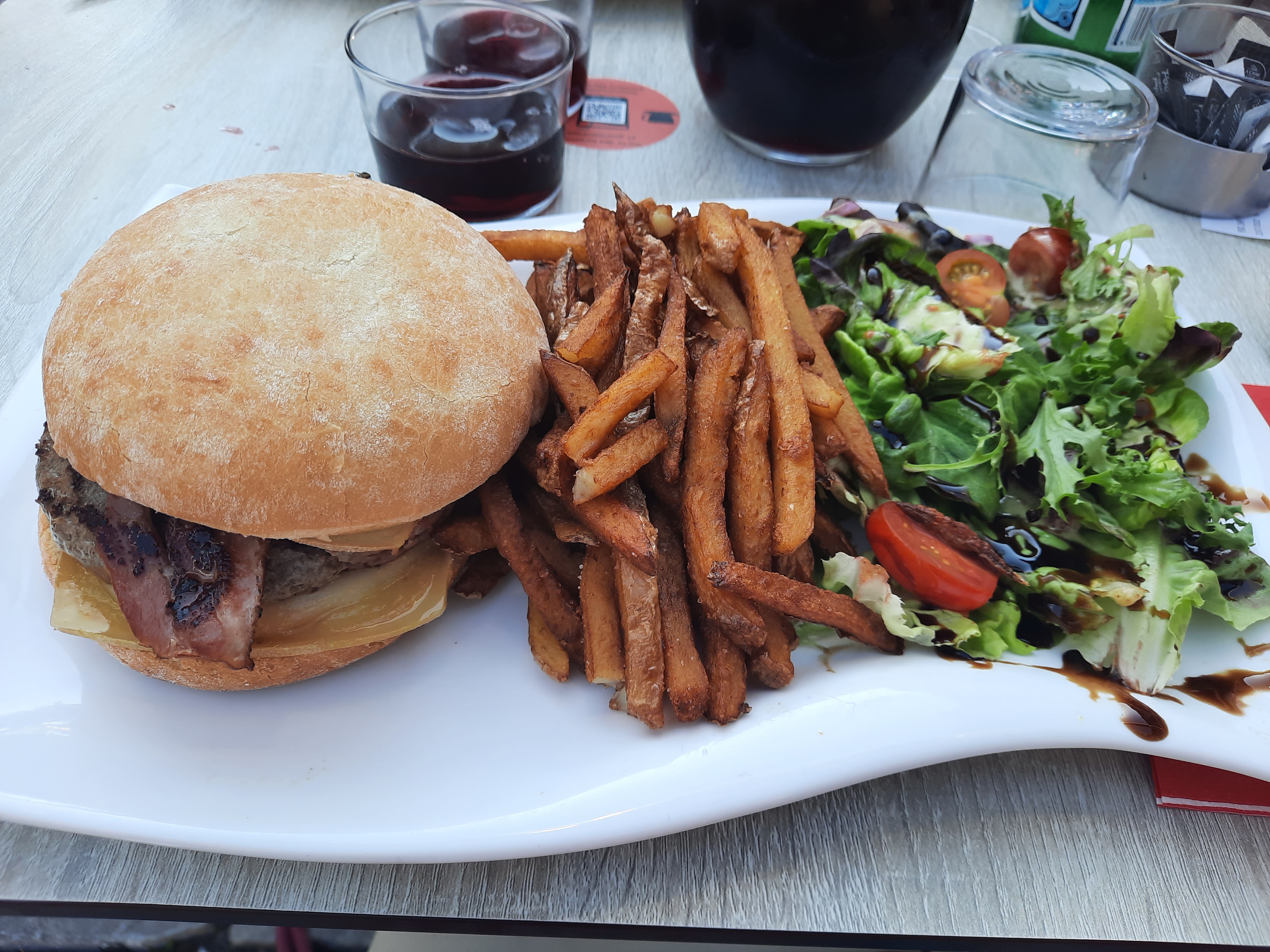 Calme, soleil, et un déjeuner en terrasse avec un excellent rapport qualité prix. Toujours aussi bien, en ce vendredi 2023, en terrasse et profitant du soleil 🌞avec Burger et Nougat glacé.