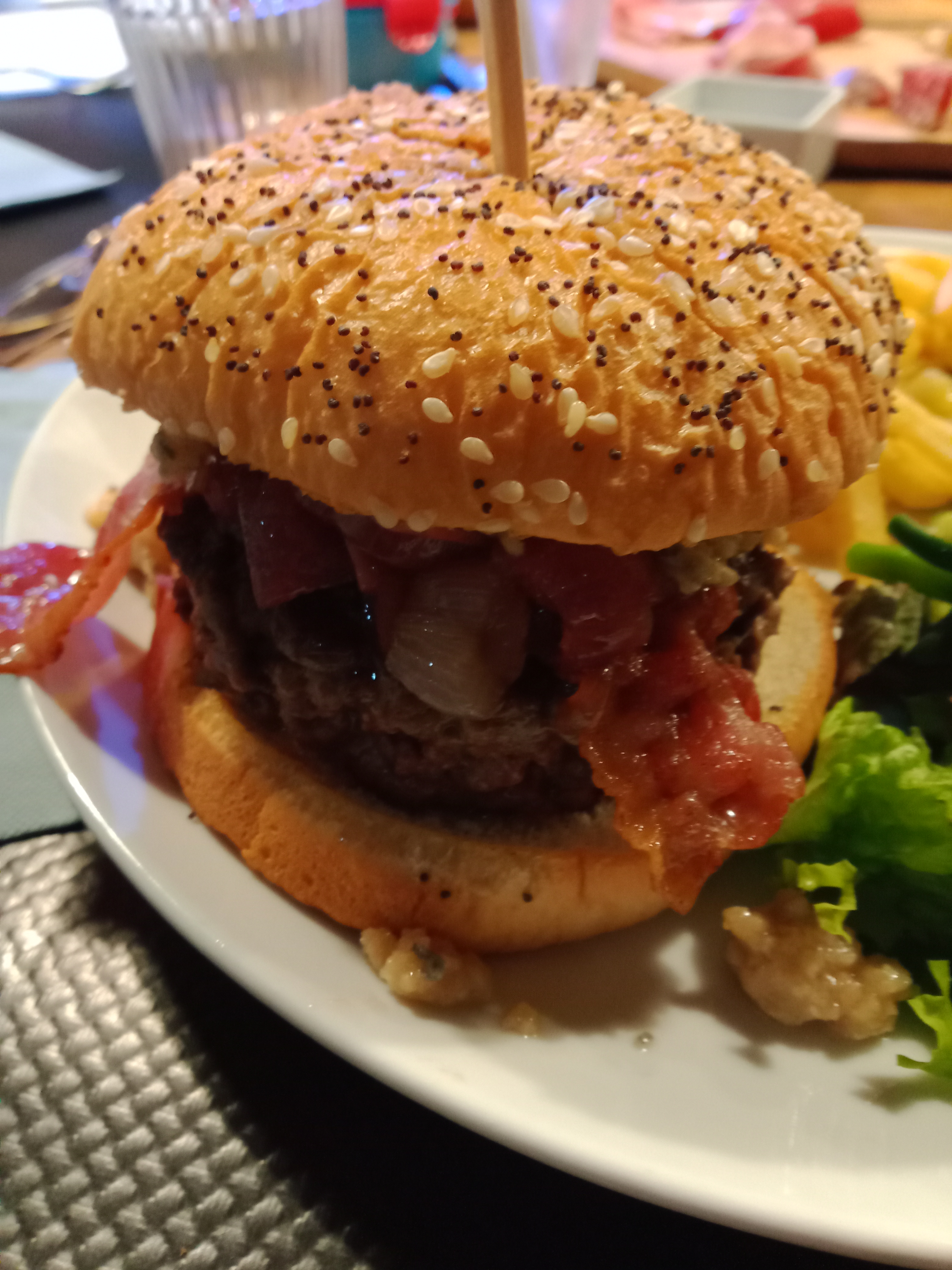 Découvert par hazard ce restaurant très joliment décoré m a épatée situé dans une petite rue d allevard on ne le voit pas toujours J ai très bien mangé cest très bon et copieux je nai pas pu terminer le Burger 😊 Très bon accueil le personnel symphatique cest agréable. ouvert depuis février 2022 je le recommande Carpassio italien Burger boeuf ,lard, reblochon , compotee d oignon , salade composée frite