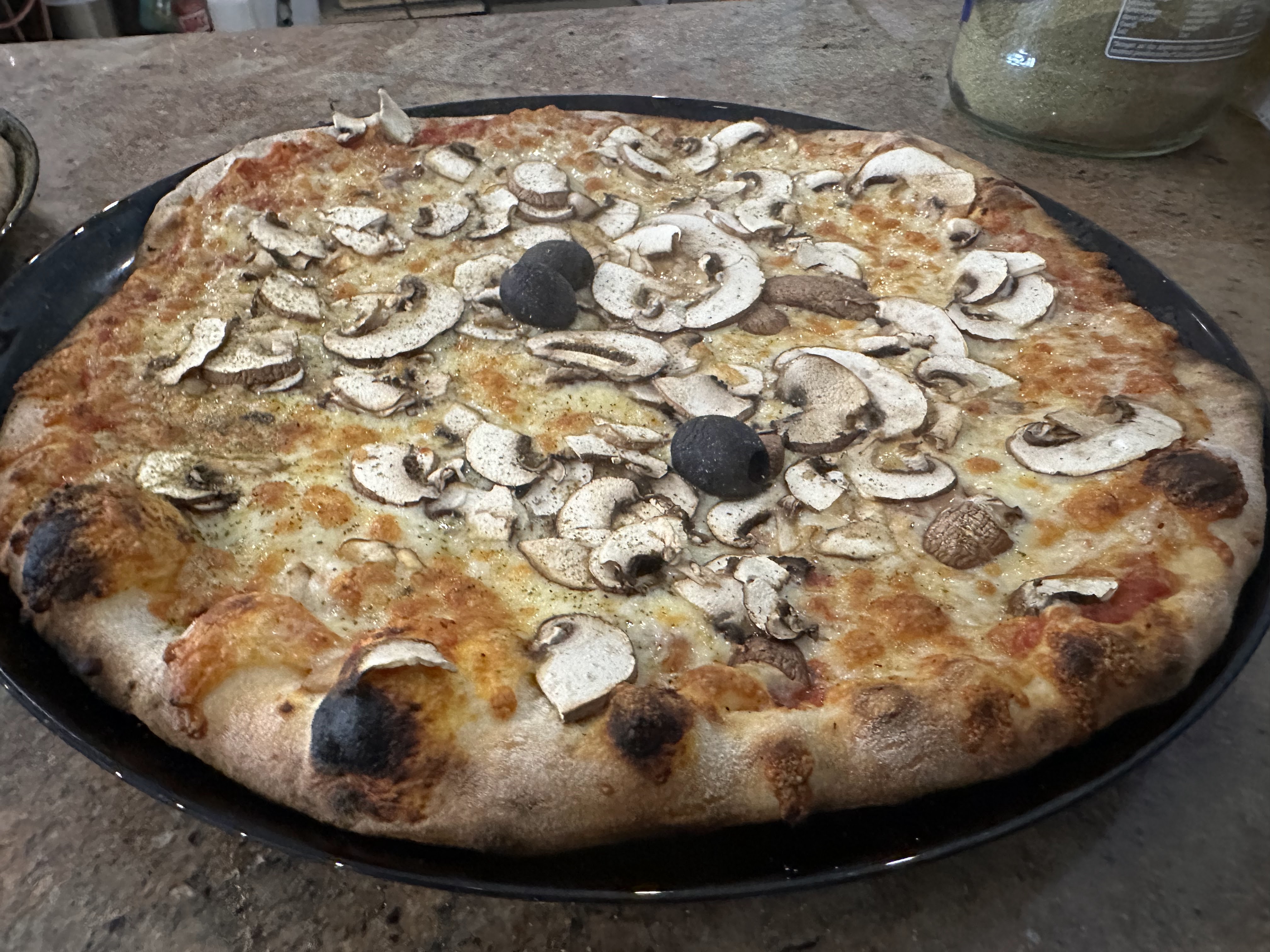 Pizza mangé ce jour ! Excellent !! Cuite au feu de bois ! J’adore ! (Bonne bière de la région ! ) 👌
