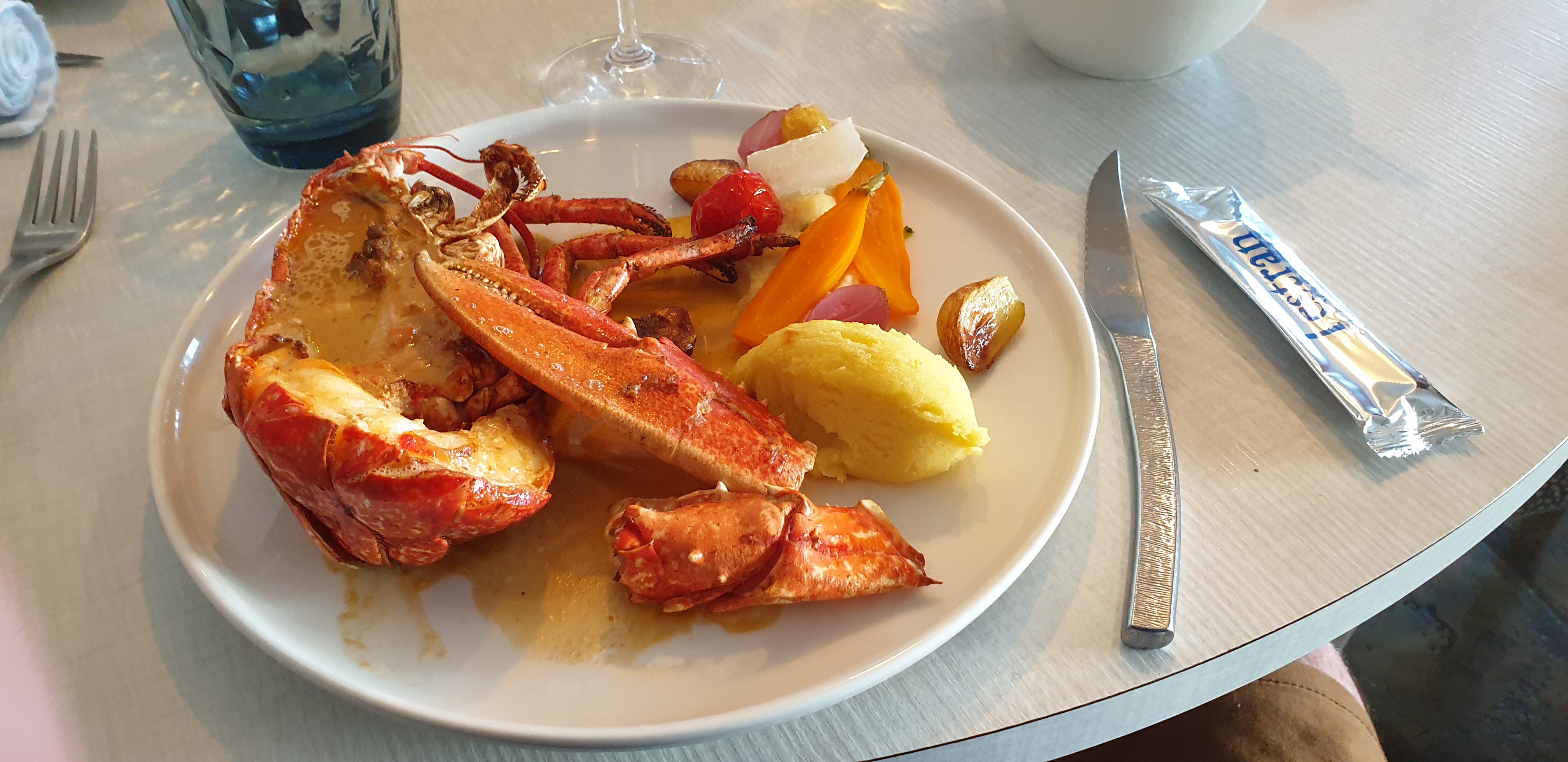 Menu homard excellent : des palourdes farcies en entrée, en passant par le homard rôti à la crepe soufflée en dessert. Service décevant... Obligés de demander la glace du petit 2 fois, du pain en rab quand la corbeille est vide, idem pour l'eau, des pinces pour le homard... Dommage vu notre addition...