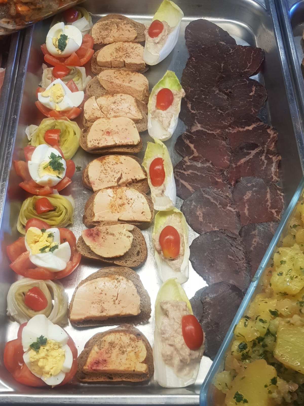 Plat simple, bon buffet d'entrée, repas ouvrier à bon rapport qualité prix, salle magnifique