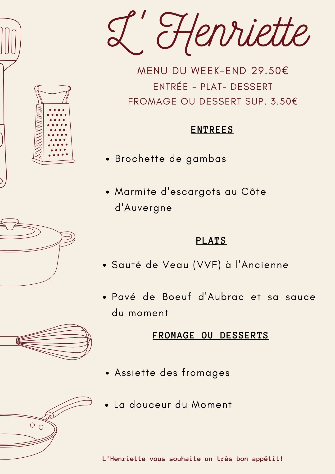 Bonjour Madame Liliane Laurent. Nous vous remercions d’avoir partagé votre avis. Nous vous présentons nos excuses si vous n’avez pas trouvé votre bonheur dans notre choix de plats. Nous nous efforçons d’améliorer notre prestation constamment. Le week-end nos recettes sont plus élaborées! N’hésitez pas à revenir pour essayer. Cordialement, Laura Lacan, co-gérante du restaurant L’Henriette.
