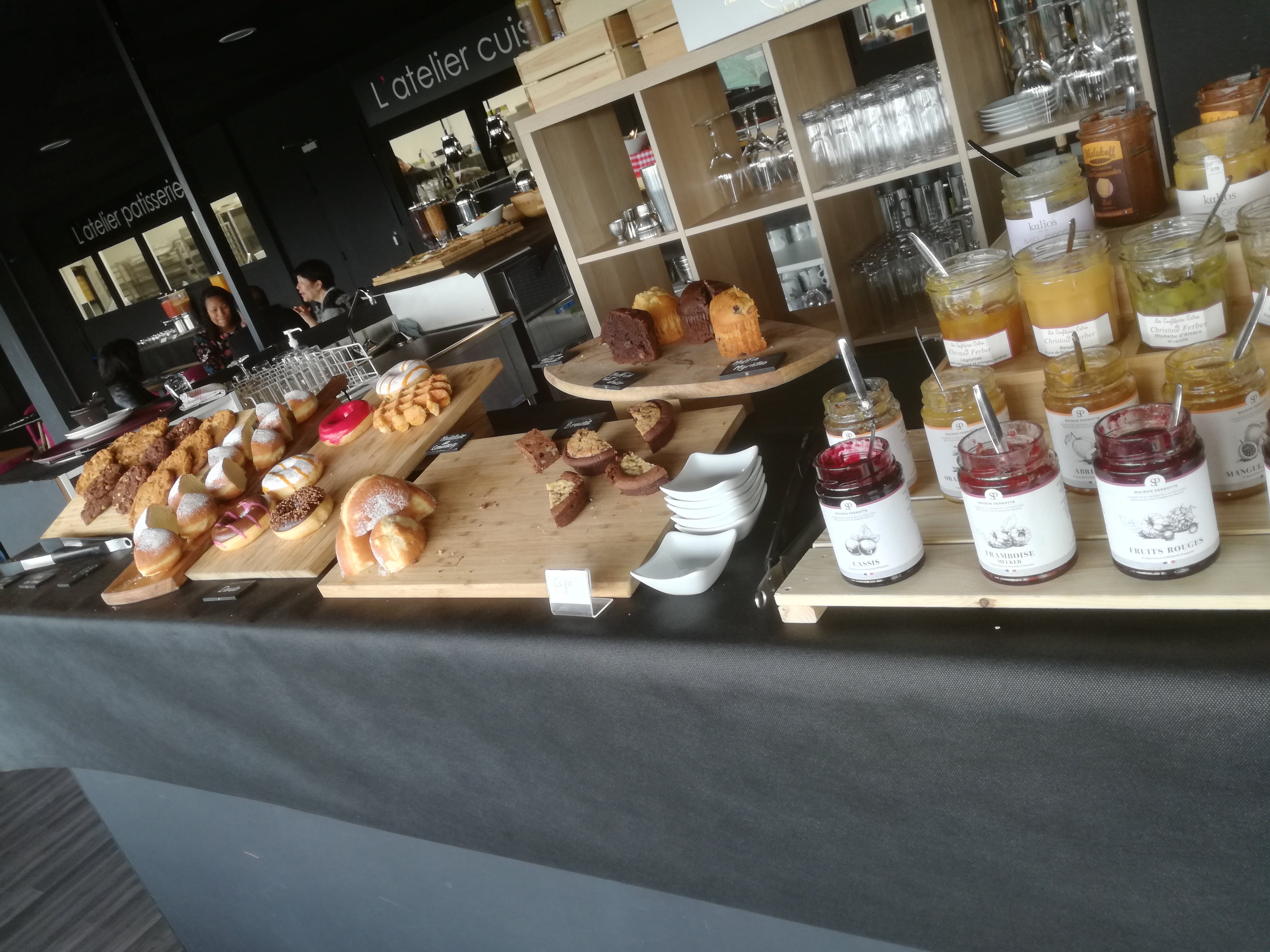 J'ai été ravi de découvrir ce lieu qui a rouvert sous cette nouvelle formule (après incendie). Ils ont fait de cet endroit quelque chose de convivial, mêlant plats, sushis, desserts, viennoiseries ou encore boisson à emporter OU à déguster dans leur restaurant. La salle intérieure est spacieuse et lumineuse, perso j'ai mangé sur la terrasse, super agréable surtout avec du soleil ! Sinon, donc buffet à volonté, entrées, crudités et charcuterie, voire même saumon fumé et pièce de saumon et ensuite des plats chauds, volaille (style Nuggets, wings, cuisses de poulet), pizza, sushis et plein de choses ! Cerise sur le gâteau : FONTAINE DE NUTELLA ! Oui oui, à volonté aussi 😄 Dernière chose : l'endroit propose des soirées, notamment le jeudi, avec divers thèmes et DJ. Je suis conquis 😉
