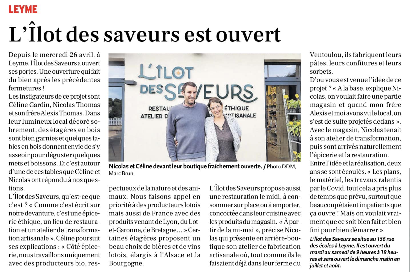 Découvrez toutes les informations concernant Restaurant L'îlot des Saveurs qui se situe au 156 Rue des Écoles, 46120 Leyme (46). Cette fiche inclut les photos, les horaires d'ouverture, l'adresse, le numéro de téléphone et les avis des clients.