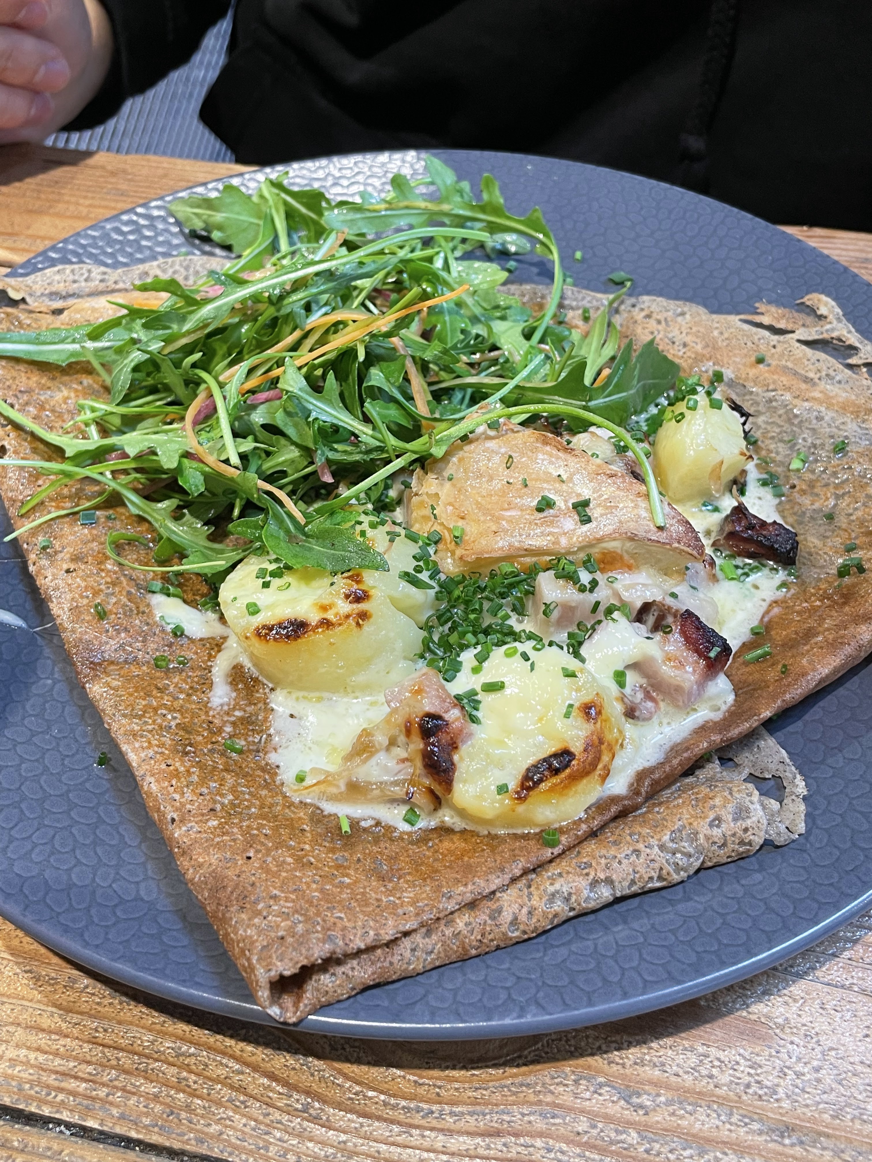 De passage sur Brest, nous voulions absolument goûter la spécialité culinaire de cette région 😍 Service rapide, serveuses souriantes, bons et beaux plats. Je recommande la chèvre miel 🐐🍯, un délice 🤤 Les tarifs sont un peu élevés pour la quantité mais ça reste des produits de bonne qualité et fait maison, donc je comprends.
