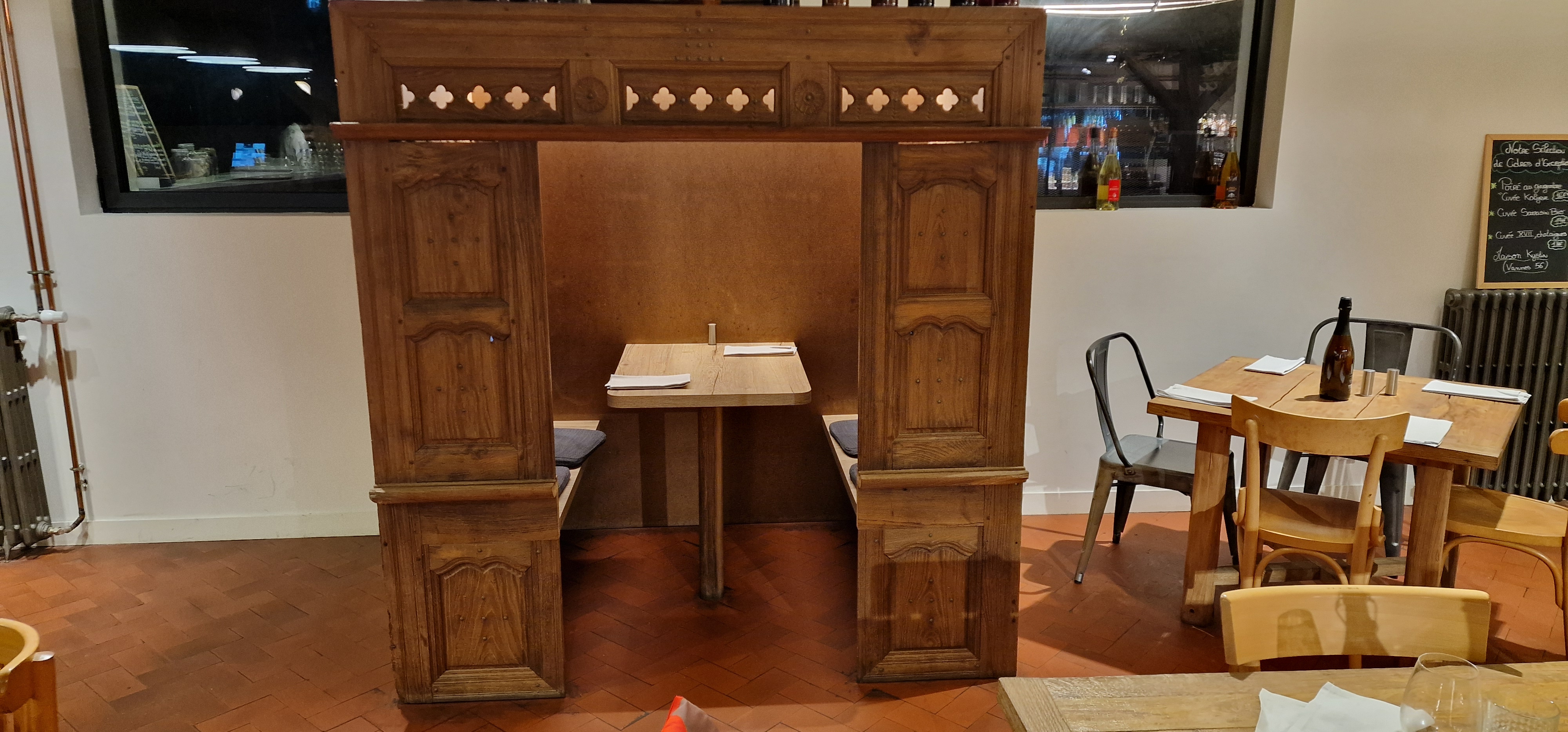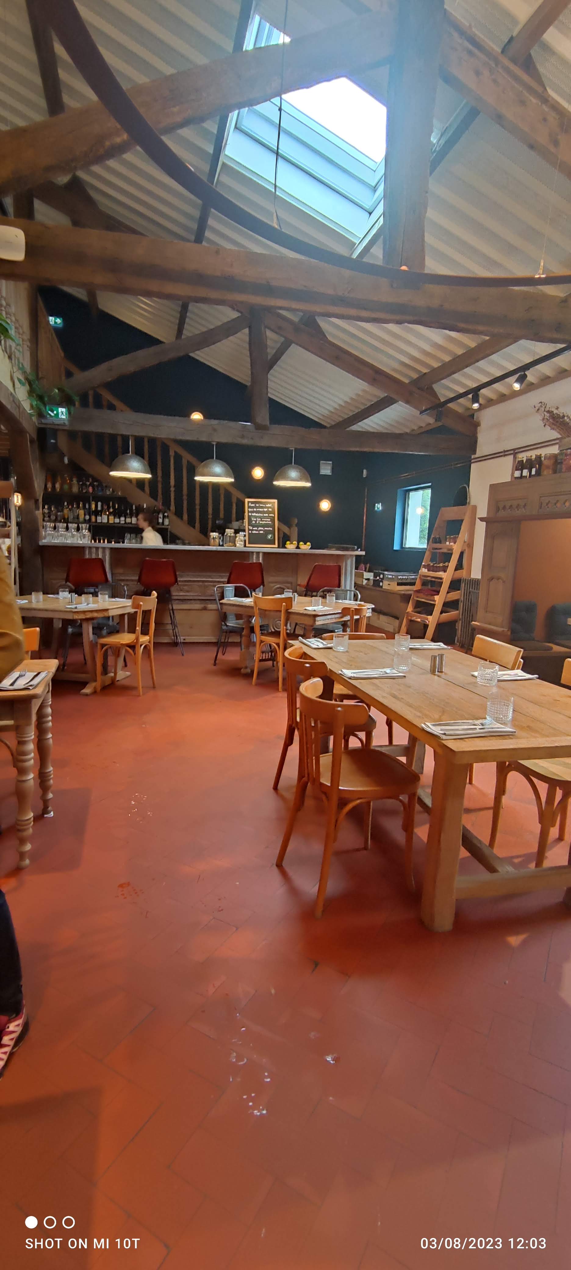L'intérieur et très bien rénové,petit bémol la propreté aux toilettes les produits pour faire l'entretiens au regard de tout le monde juste à côté du bar, cela devrait être ranger dans une autre pièce. Un morceau de plastique a pris place dans le dessert .Le verre a bière vraiment très petit plutôt un verre à eau ,le cokail rhum blanc décevant trop epais trop sucré rien pour mélanger, la carte pas trop de choix . La seule viande il faut regarder sur une ardoise inexistante .Des petits détails ouiii mais trop de petits détails .Après la galette était bonne .