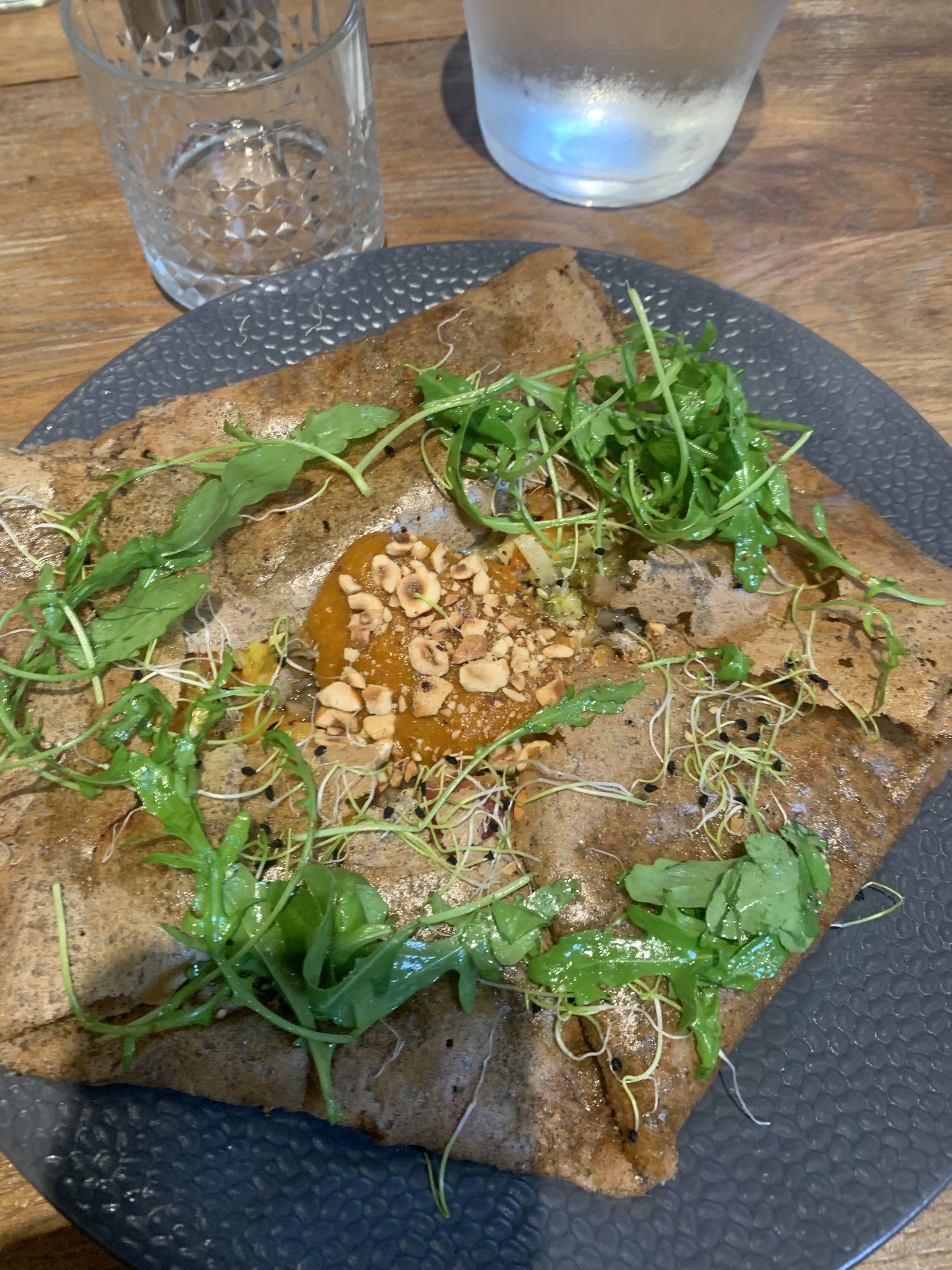 Personnel agréable, très belle déco, concept et état d'esprit dans l'air du temps, bio, local (ça se ressent d'ailleurs sur l'addition) mais... On sent quand même que la machine n'est pas encore rodé surtout en cuisine. Service long, crêpes qui reste pas mal de temps sous le chauffe plat avant d'arriver sur la table. 2 crêpes, 2 erreurs, l'œuf de la complète oublié remplacé par des pommes de terre et pour l'autre ce sont les pommes de terre qui n'y étaient pas. Pour ma crêpe dessert la chantilly avait complètement fondu, à cause du chauffe plat sûrement. A priori trop grande capacité de salle pour un seul cuisto et son commis. Et je tiens à préciser que j'ai donné mon avis en live avant de partir... Attention c'est pas comme ci on ne pouvait pas comparer avec la concurrence dans le coin. Courage ! y a tout pour réussir à devenir une bonne adresse.