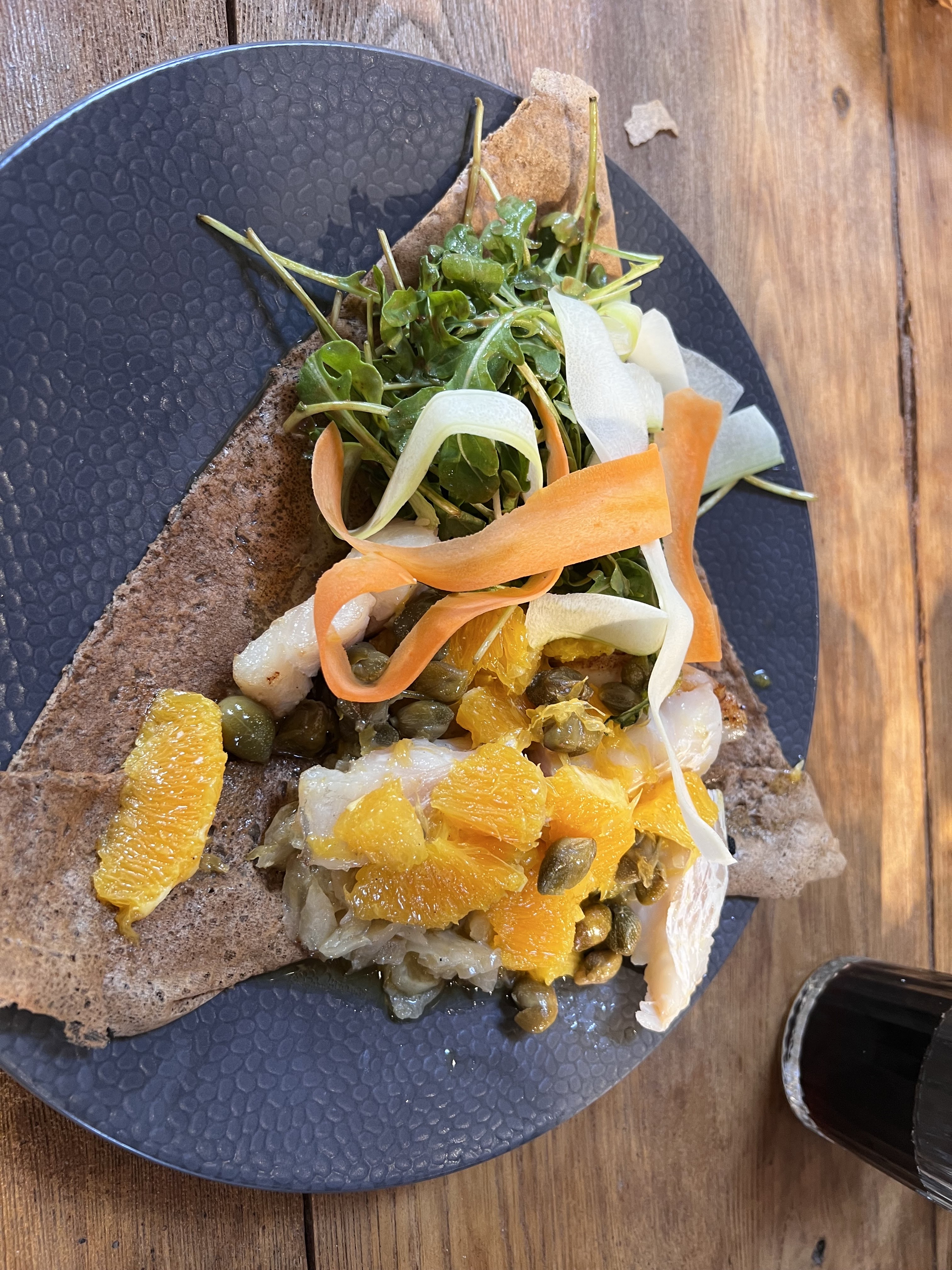 Cuisine à base de produits frais et locaux Crêpes savoureuses, originales et très bien présentées . Très bon rapport qualité prix