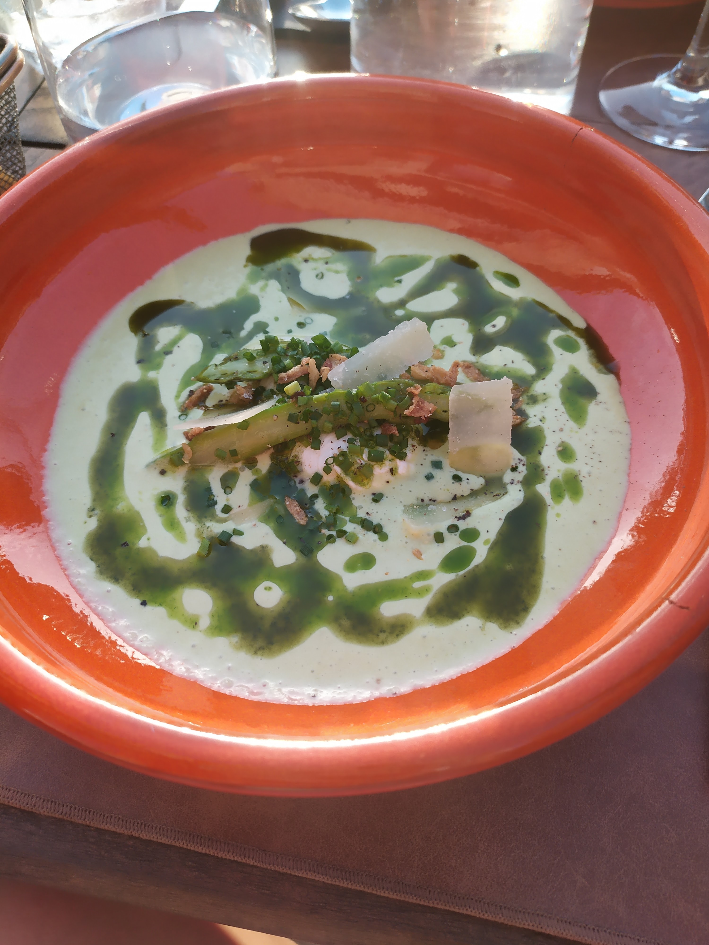 Une très belle découverte - plats simples mais le goût est vraiment là. Le meilleur velouté d'asperges que j'ai jamais mangé (même si je ne tiens pas de classement...) .