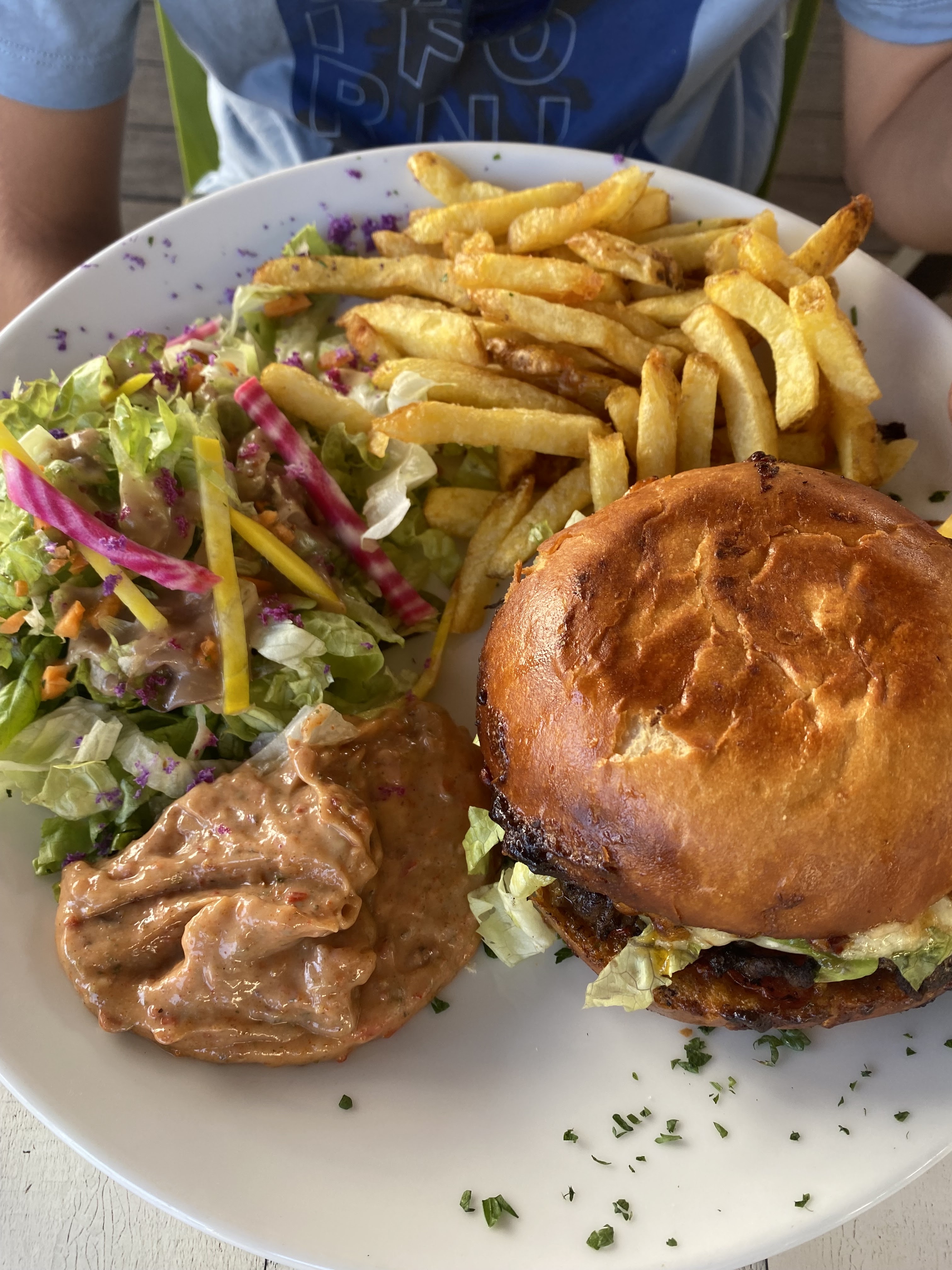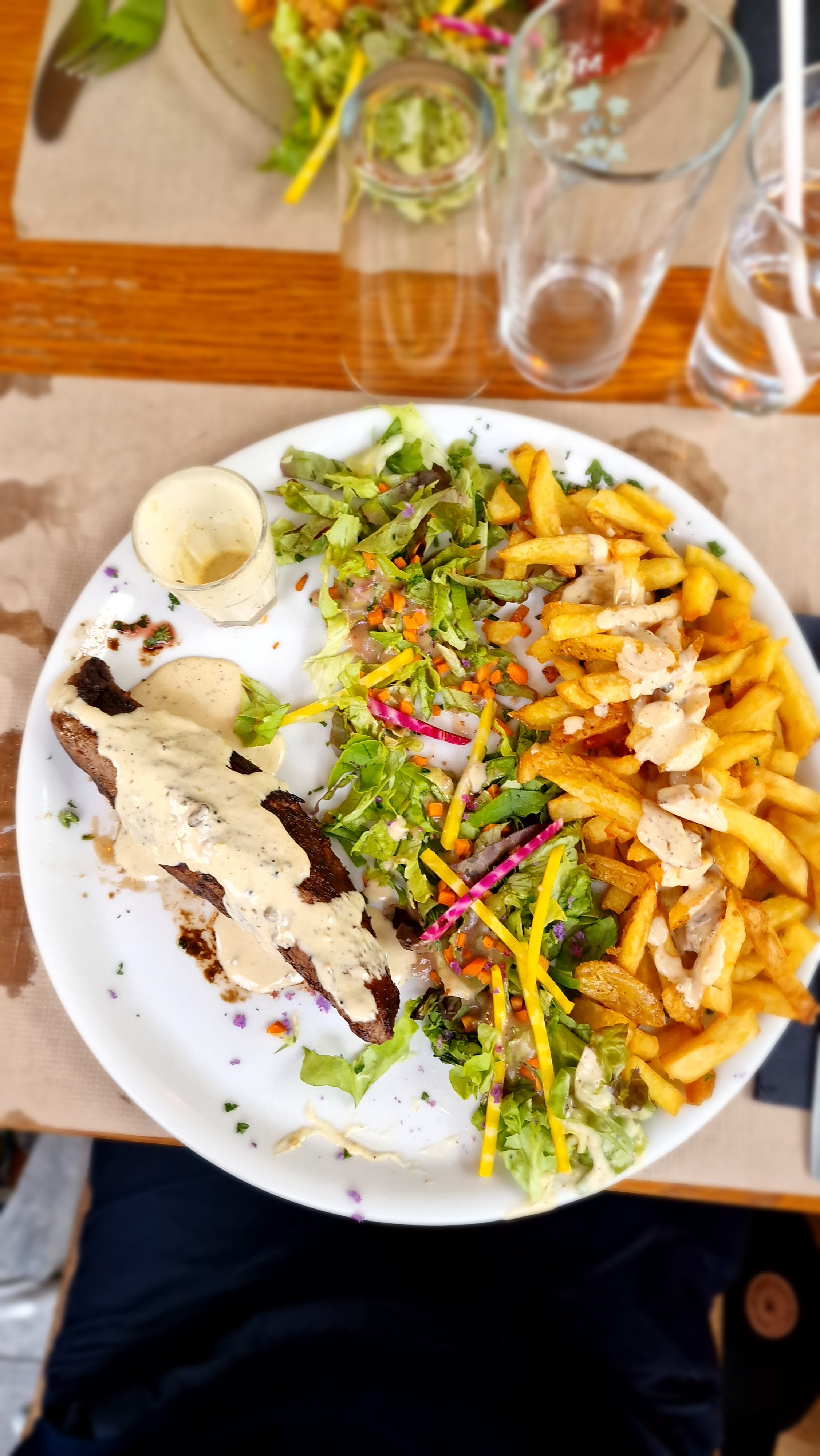 Posté le 28/07/2024 à 07:29"Un moment très agréable, moules au cure avec spaghettis de courgettes, des hamburgers, un fichier and chips, du bon vin. Merci et fellicitation !."
