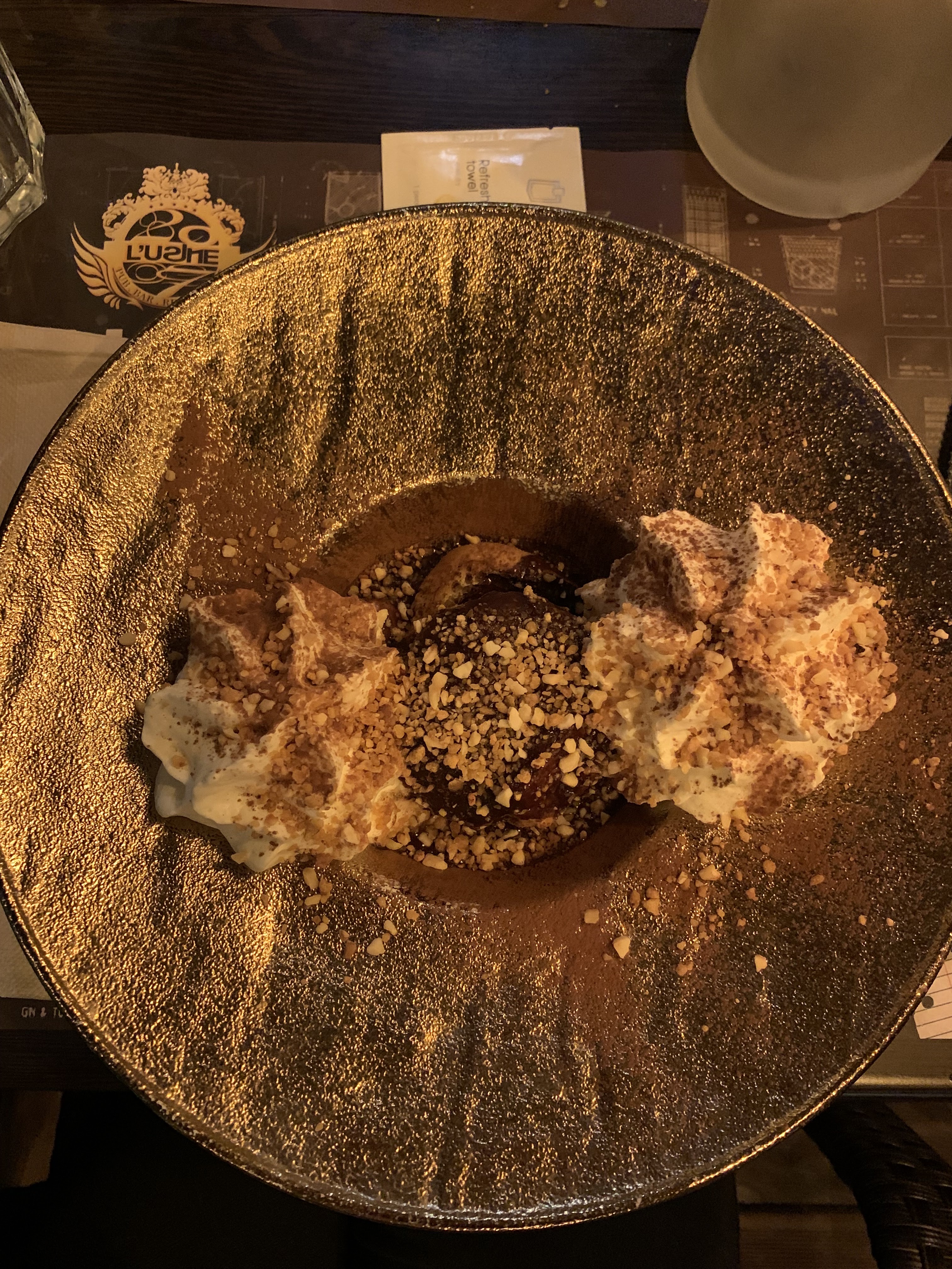 1ere fois le week end dernier avec mon mari, c'était super bon et le personnel très très agréable et souriant. Hier soir 23h30 nous sommes dans un restaurant sur Paris, je propose à mes amis (12 personnes) de terminer par une note sucré avec cocktail à l'Usine. Nous arrivons à 00h. Nous avons été très très bien accueilli malgré le fait qu'il soit tard. Les desserts/cocktails super bon! Mes amis reviendront et moi aussi d'ailleurs. Merci encore pour la qualité du service et la qualité des plats.