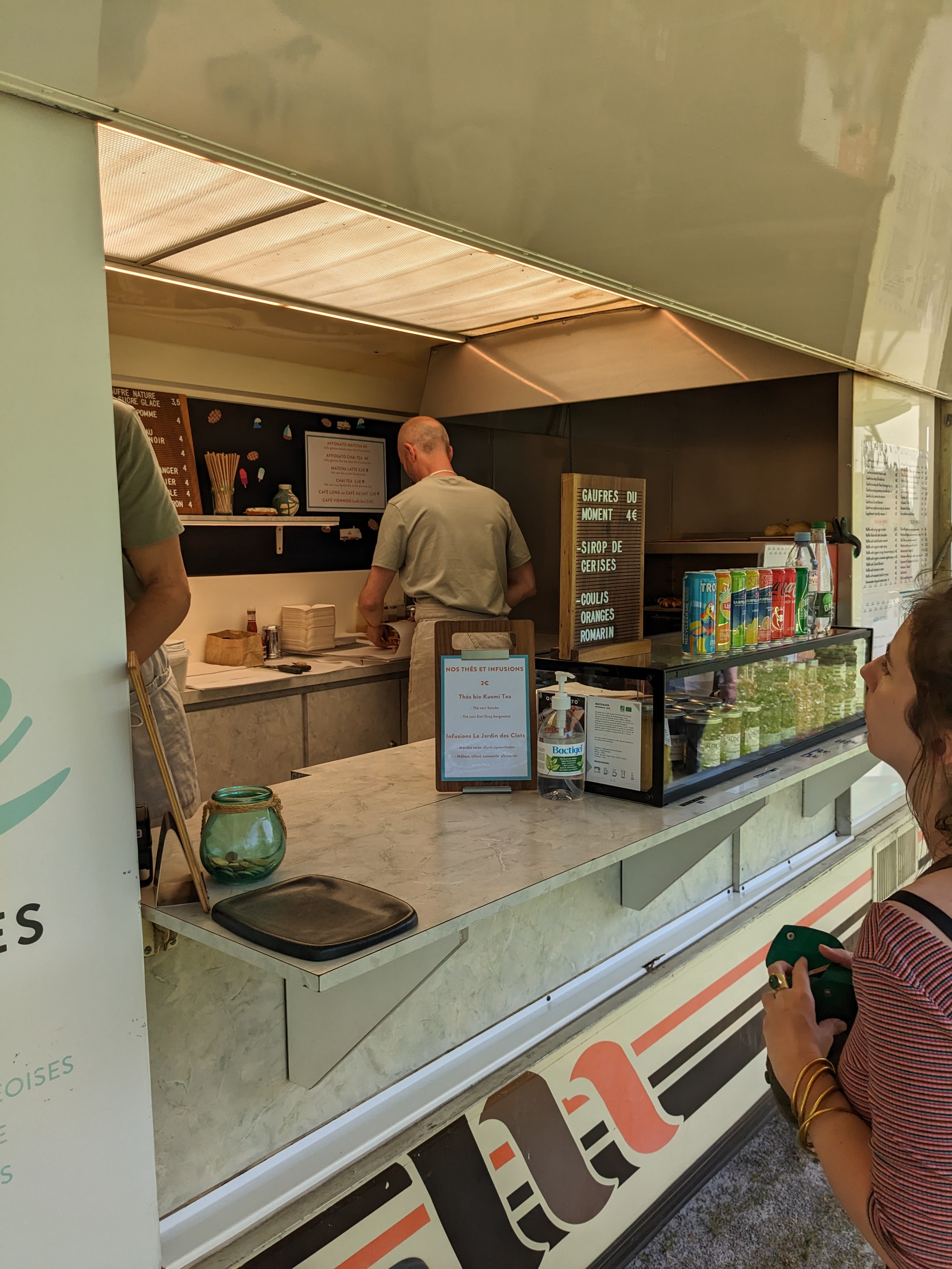 La meilleure gaufre de toute mon existence!! Après avoir traversé la baie de somme nous avions envie d un goûter mais qu elle ne fut notre plaisir de dénicher ce fabuleux food truck en face de la gare, ovation spéciale pour la gaufre au caramel à la fois moelleuse et croustillante avec ce petit goût de caramel miam miam dommage que nous habitions si loin
