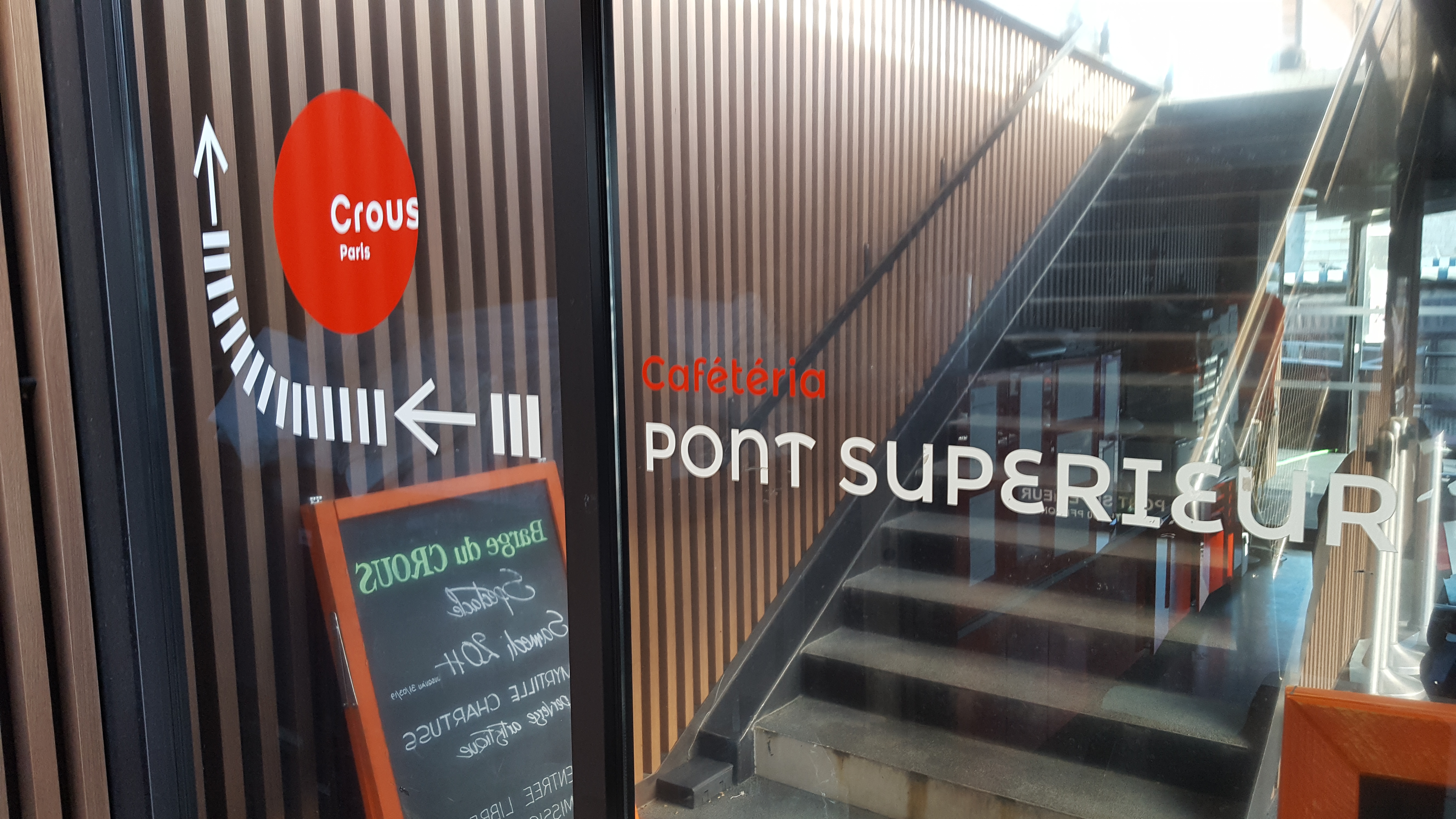 Superbe vitrine du CROUS au bord de Seine, située à côté du Batofar. Prix du repas sans carte étudiant 8€. Bon et pas cher !!